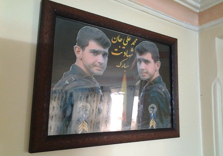 عکس شهید محمد علی دولت آبادی گویی حرف ها برای گفتن دارد. حرف هایی که تنها باید آنها را از قاب یخ زده متصل شده به دیوار خوانده شوند.