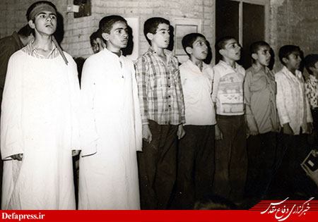 این عکس هم مربوط به گروه سرود مسجد است. در این عکس، محمد علی پور رضا، شهید عبدالله ریاضی که در عملیات بدر به شهادت رسید و شهید اسدالله کیانی که در عملیات فتح خرمشهر به شهادت رسید از سمت چپ ایستادهاند. این گروه سرود تنها در داخل مسجد فعالیت میکرد و هیچ وقت فرصت نکرد فعالیتی در بیرون داشته باشد.