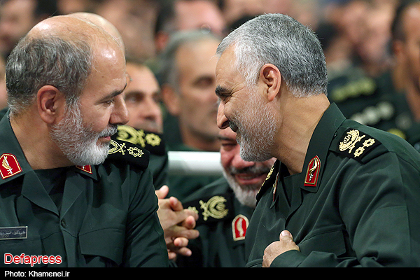 سرلشکر قاسم سلیمانی فرمانده نیروی قدس ایران در دیدار رهبر انقلاب با فرماندهان حضور پیدا کرد.