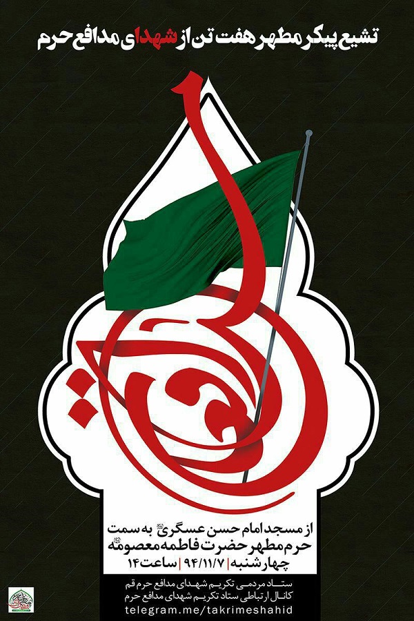 پیکر این شهید بزرگوار، فردا(چهارشنبه) ساعت 14 به همراه پیکرهای 6 شهید افغانستانی و پاکستانی مدافع حرم در قم تشییع میشود.