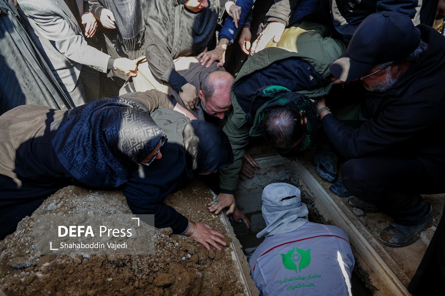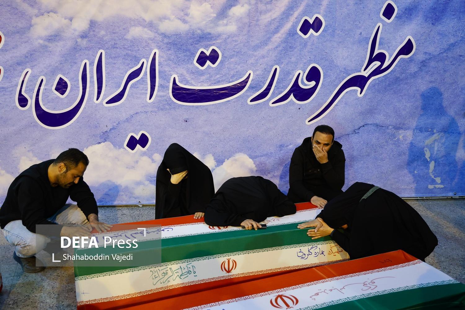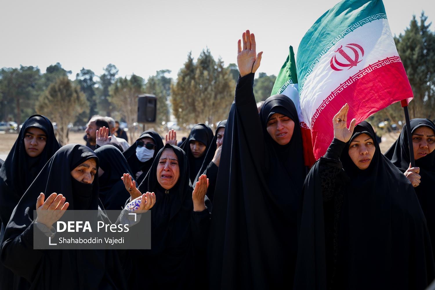 The farewell, funeral, and burial ceremony for the martyrs of the brutal American-Zionist attacks was held in Plot 42 of the Behesht Zahra Martyrs' Cemetery in Tehran, with the presence of the martyr-loving people and the families of the martyrs.