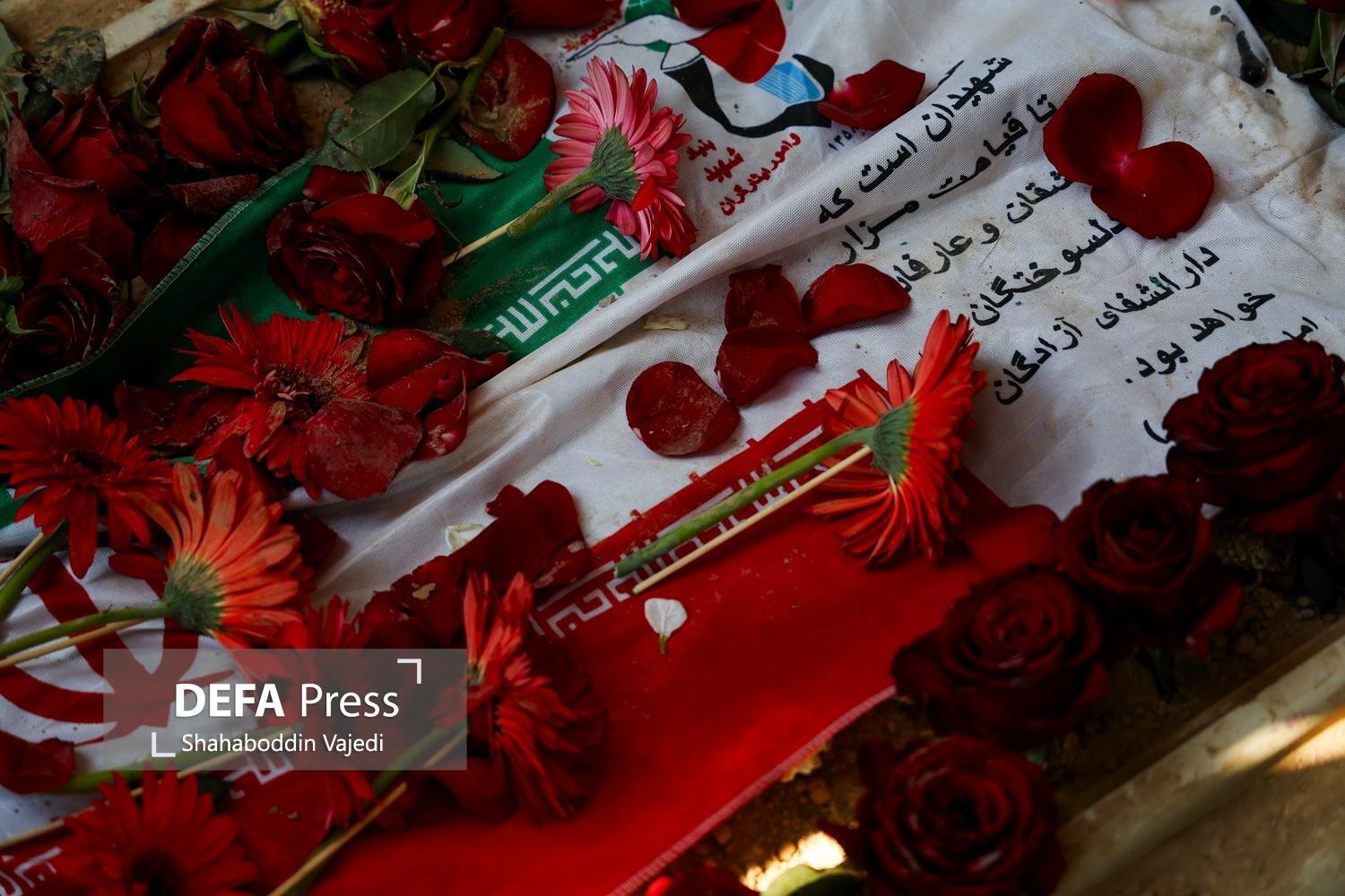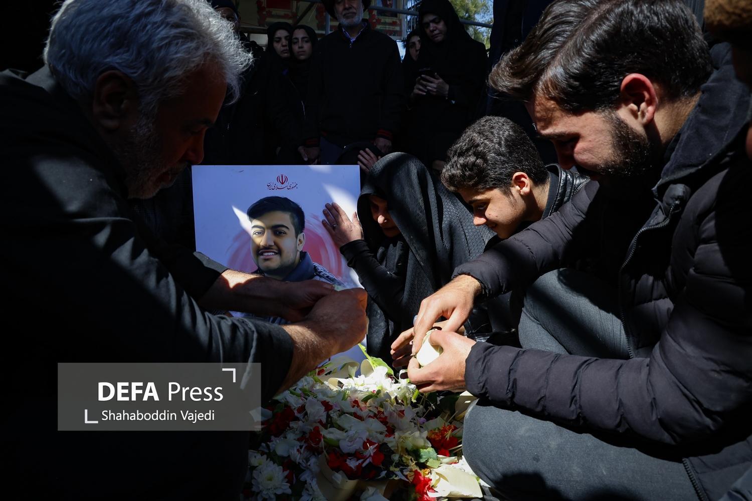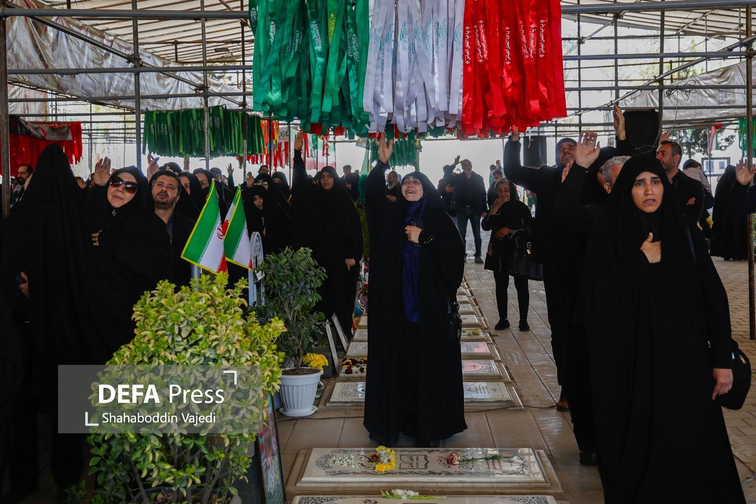 The farewell, funeral, and burial ceremony for the martyrs of the brutal American-Zionist attacks was held in Plot 42 of the Behesht Zahra Martyrs' Cemetery in Tehran, with the presence of the martyr-loving people and the families of the martyrs.