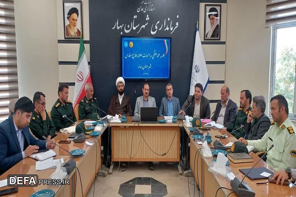 جلسه هماهنگی گرامیداشت هفته دفاع مقدس با حضور مسئولان شهرستانی و استانی در سالن شهدای خدمت فرمانداری بهار برگزار و برنامههای این هفته با شعار «ما فاتحان قلهایم» مورد بررسی و تدوین قرار گرفت.