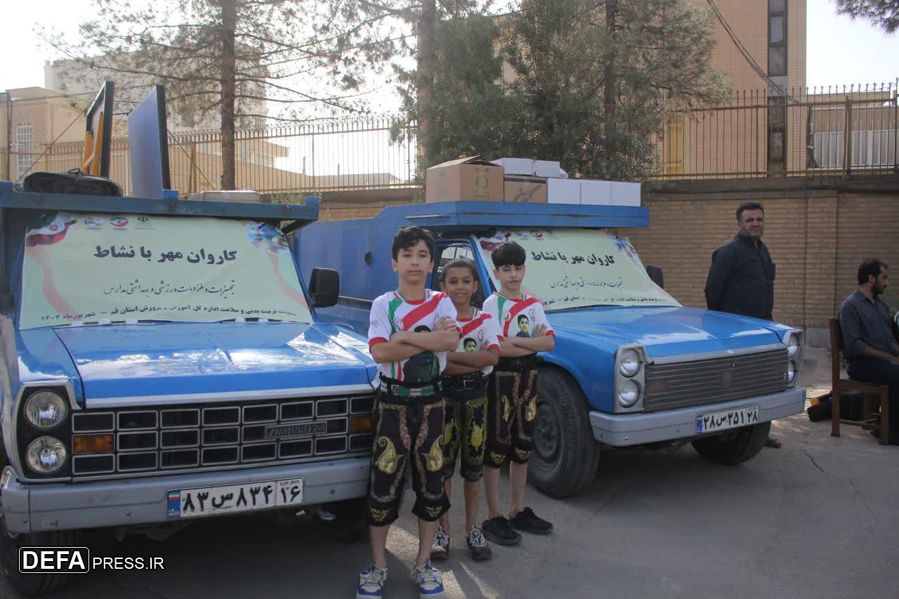 کاروان تجهیزات ورزشی با عنوان مهر بانشاط امروز به مدارس قم اعزام شد.