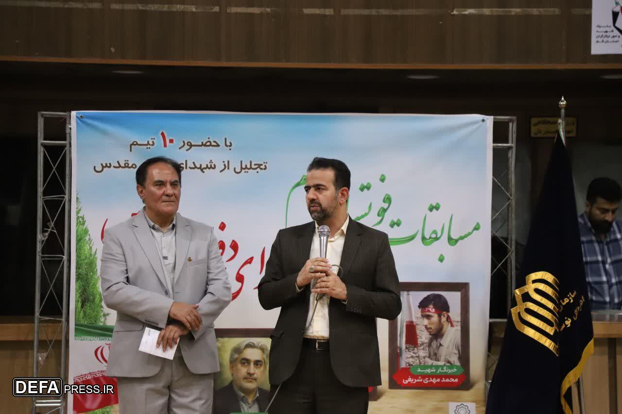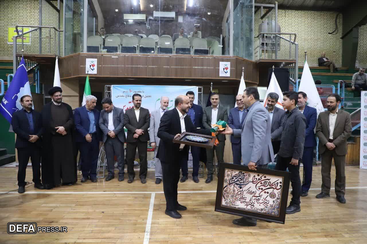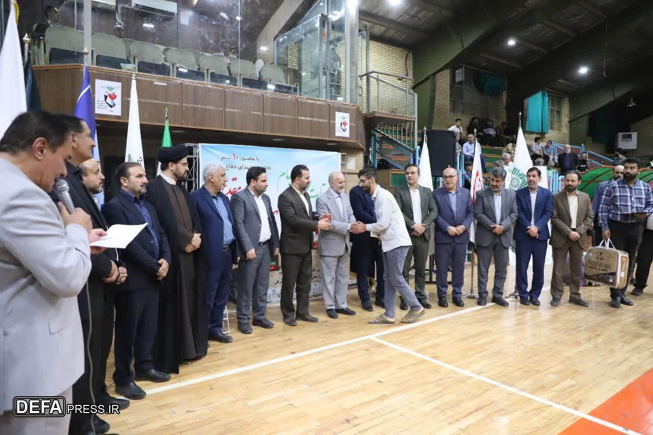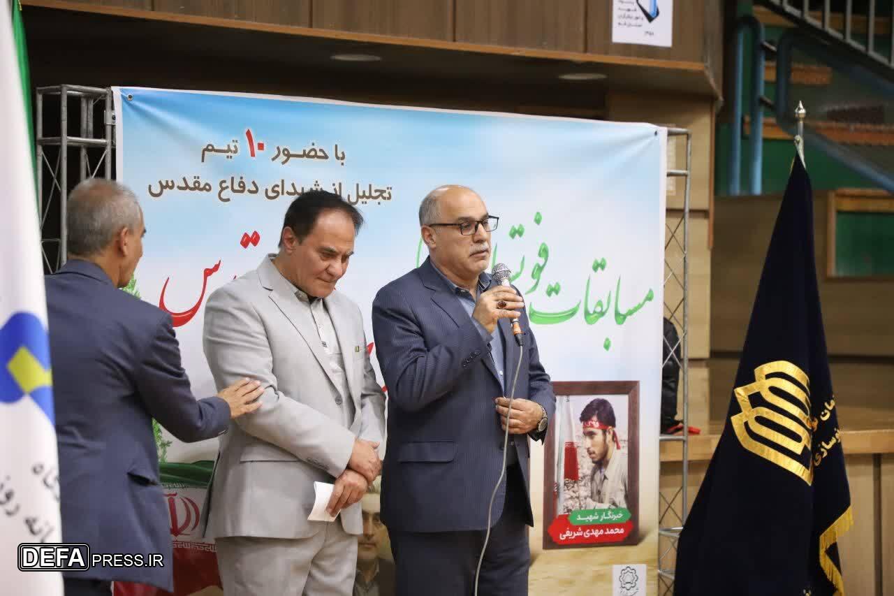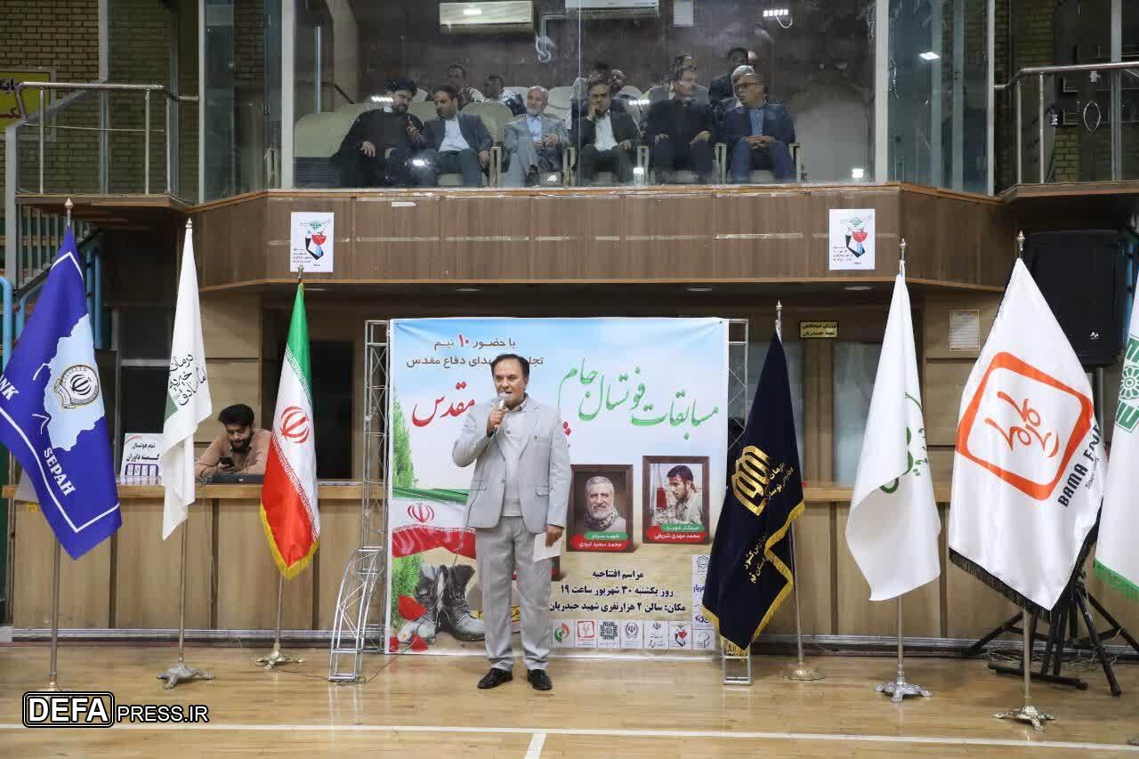 آیین افتتاحیه مسابقات فوتسال جام شهدای دفاع مقدس و تقدیر از تعدادی از خانواده های شهدای جنگ تحمیلی اخیر، امشب در آستانه هفته دفاع مقدس در ورزشگاه شهید حیدریان قم برگزار شد.