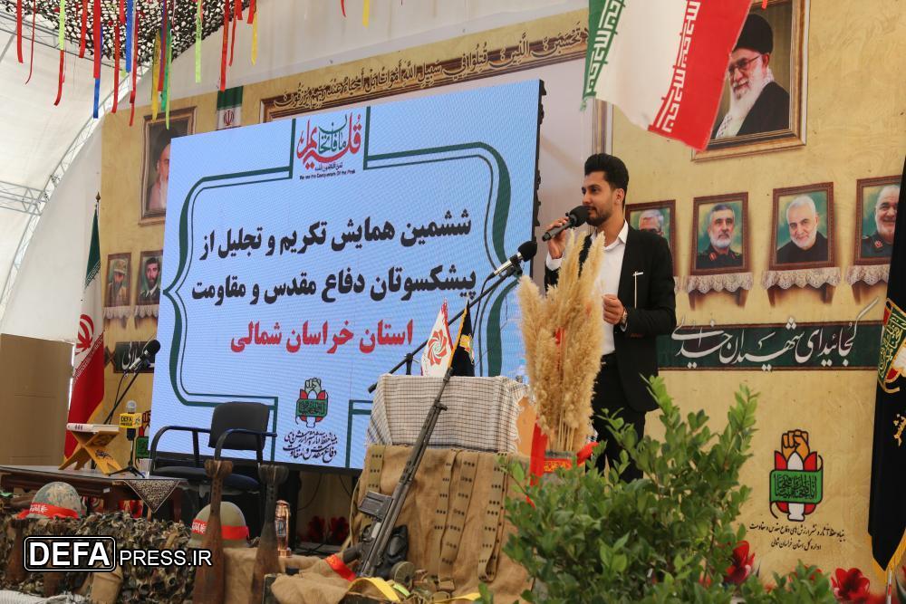آئین تجلیل از پیشکسوتان دفاع مقدس و مقاومت خراسان شمالی امروز (چهارشنبه) با حضور حجت الاسلام و المسلمین «رضا نوری» نماینده ولی فقیه در خراسان شمالی، مسئولان ارشد استانی، فرماندهان نیرو‌های مسلح، خانواده‌های معظم شهدا، ایثارگران و جانبازان هشت سال دفاع مقدس در اداره کل حفظ آثار و نشر ارزش‌های دفاع مقدس و مقاومت استان برگزار شد.