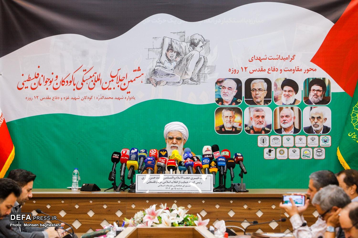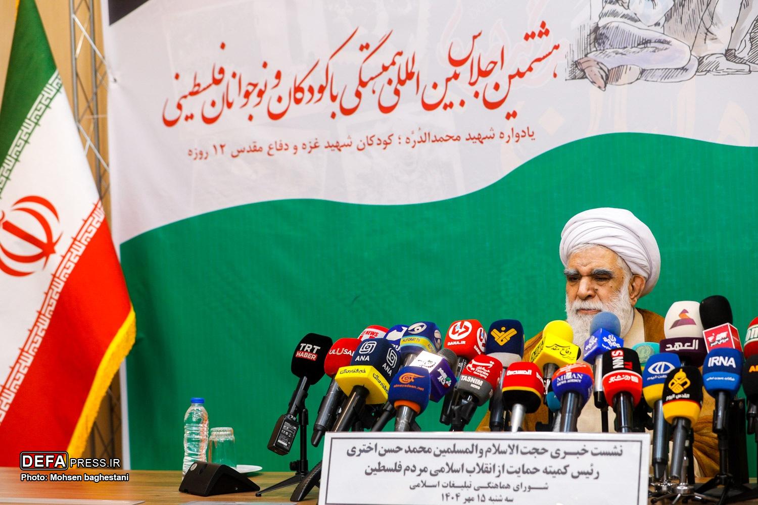 نشست خبری هشتمین اجلاس بینالمللی همبستگی با کودکان و نوجوانان فلسطینی، یادواره شهید «محمد الدوره»، کودکان شهید غزه و دفاع مقدس ۱۲ روزه، صبح سهشنبه ۱۵ مهرماه ۱۴۰۴ با حضور حجتالاسلام والمسلمین «محمدحسن اختری» رئیس کمیته حمایت از انقلاب اسلامی و مردم فلسطین و اصحاب رسانه در محل دفتر شورای هماهنگی تبلیغات اسلامی برگزار شد.