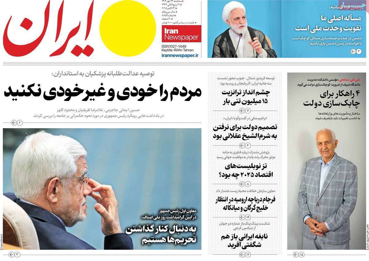 روزنامه‌های بیست و دوم مهر ۱۴۰۴