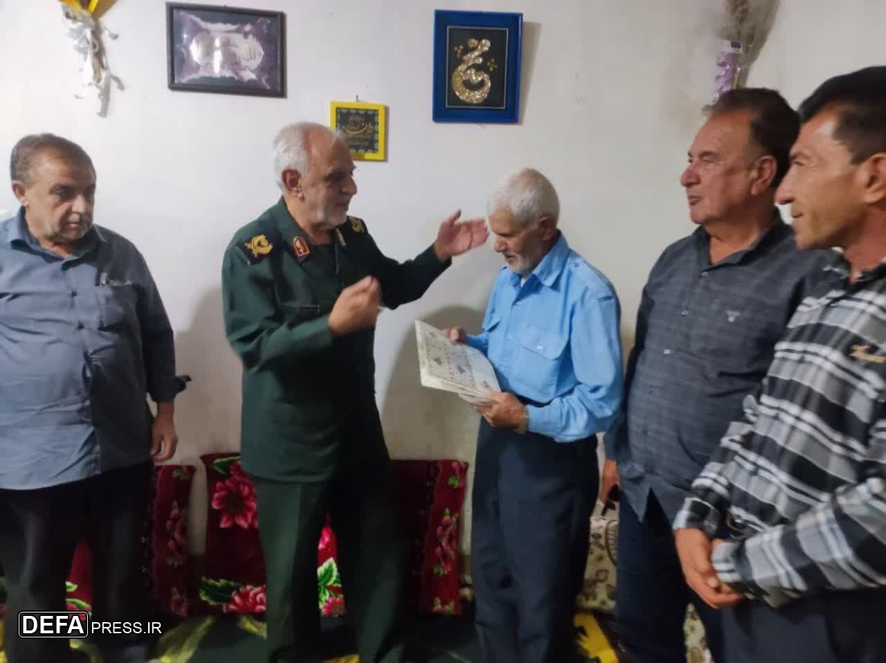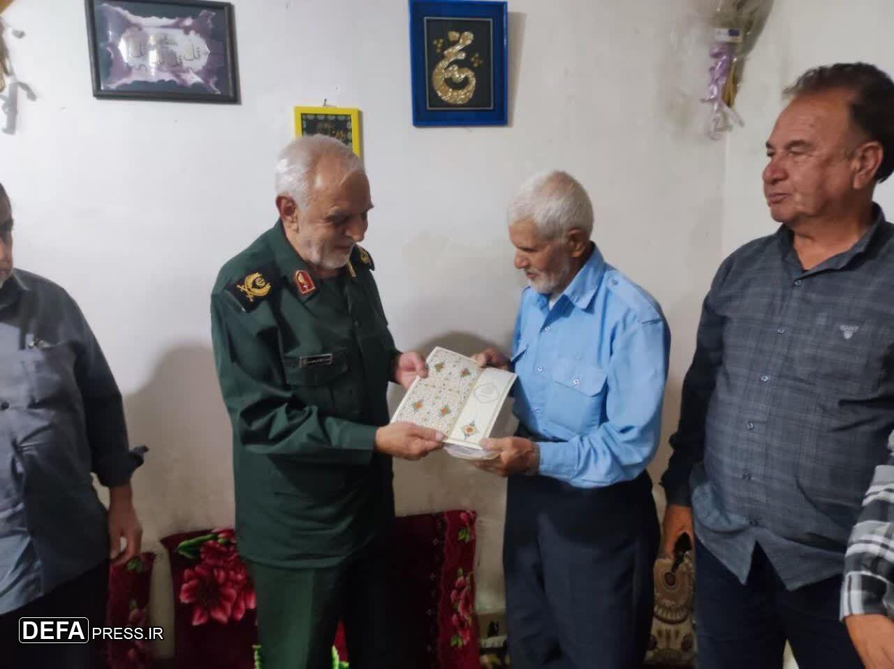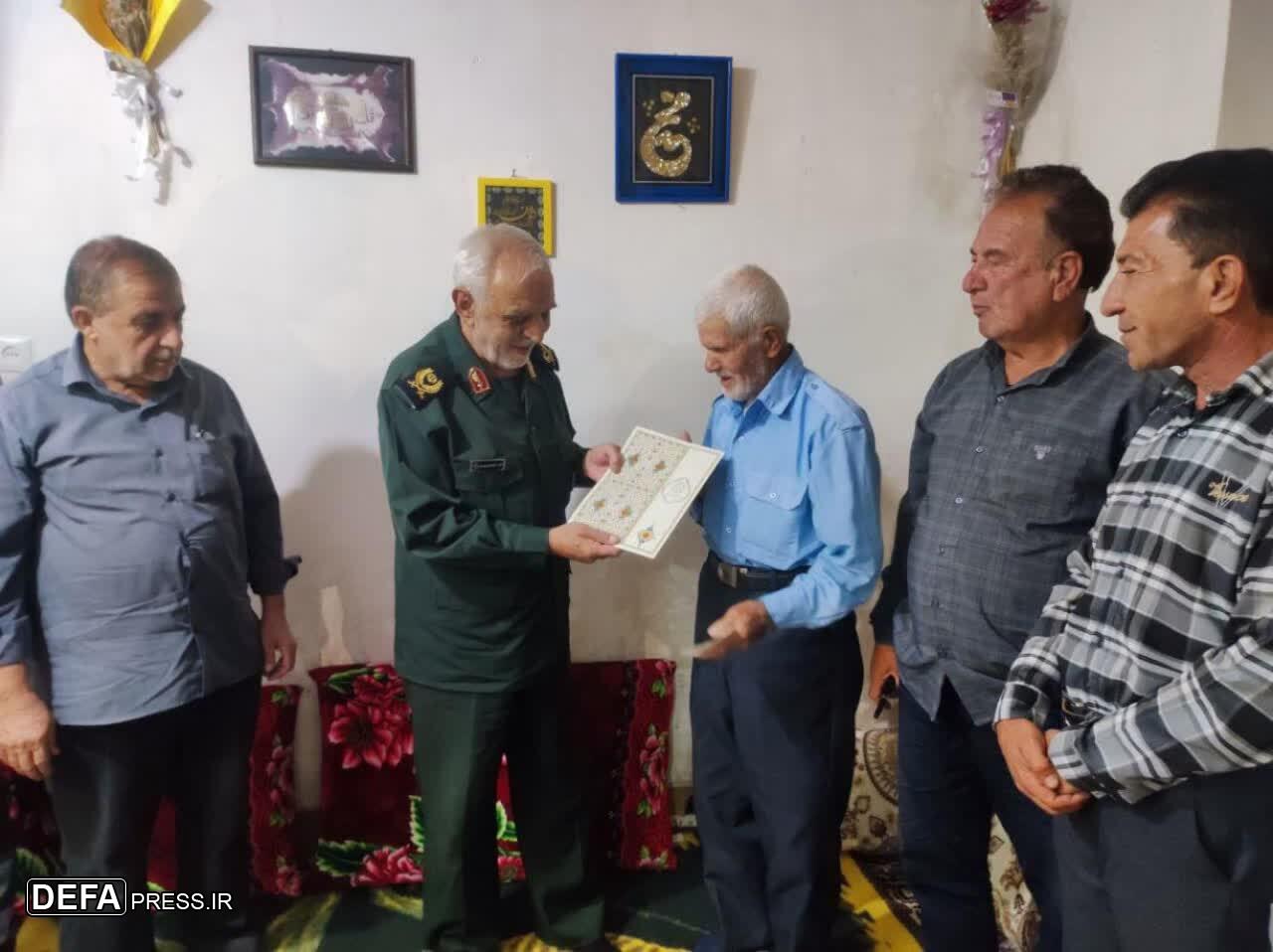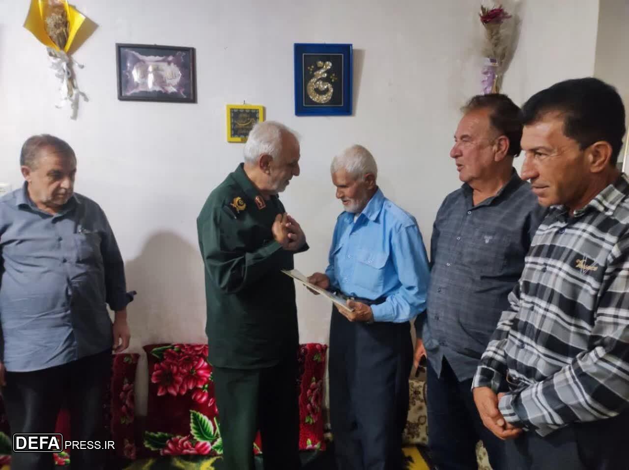 سرتیپ دوم پاسدار سعید کوشکی جهرمی مدیرکل حفظ آثار و نشر ارزش‌های دفاع مقدس و مقاومت فارس با حضور در منزل پیرترین رزمنده استان فارس در دوران دفاع مقدس رزمنده «جمعه رحمانیان» در روستای سنان شهرستان فسا دیدار و با اهداء لوح سپاس از وی تقدیر کرد.