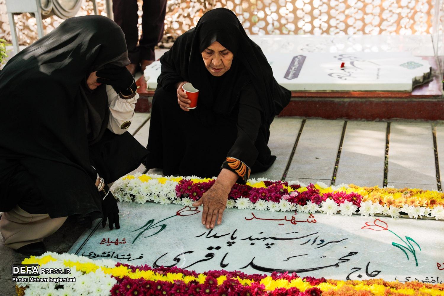 حضور مادر سردار شهید ربانی برای اولین بار بر مزار فرزند شهیدش
