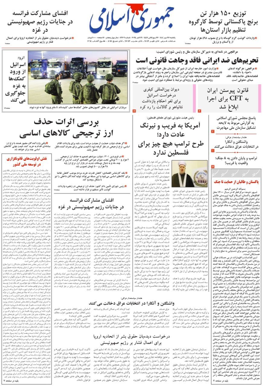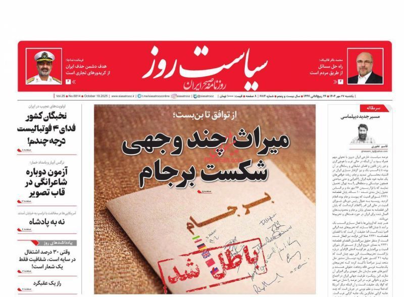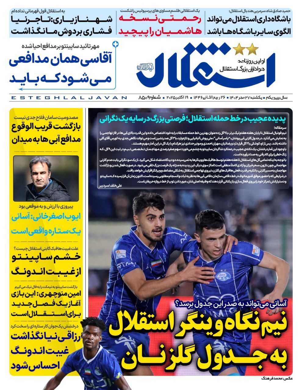 روزنامههای بیست و هفتم مهر ۱۴۰۴