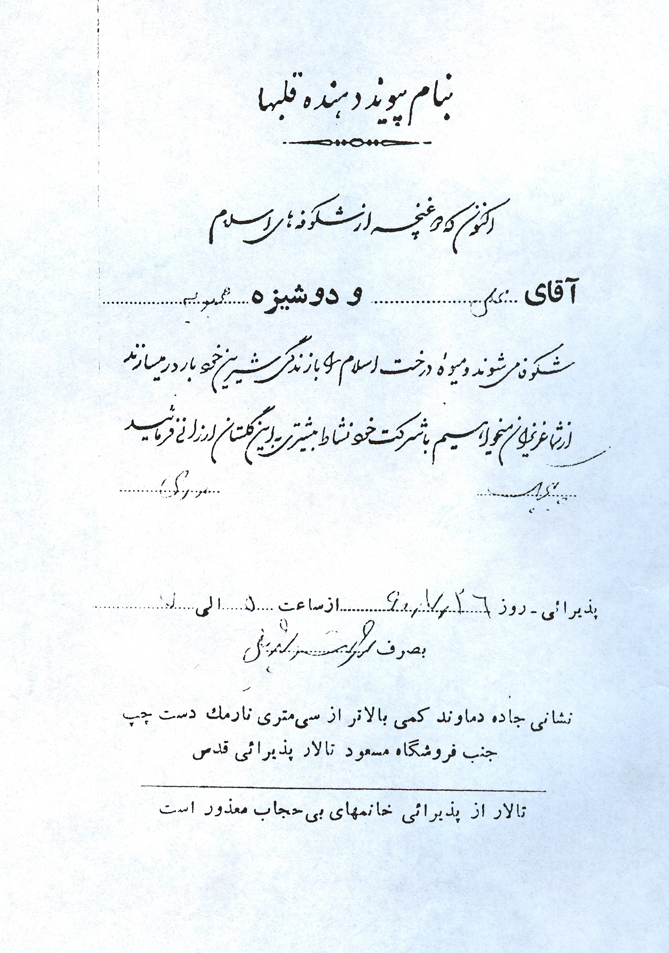مراسم ازدواج سردار شهید «غلامعلی پیچک»، ۲۶ مهر سال ۱۳۶۰ برگزار شد؛ اما او تنها ۲ ماه بعد، یعنی ۲۲ آذر، سوی معبود خویش پر کشید و آسمانی شد.