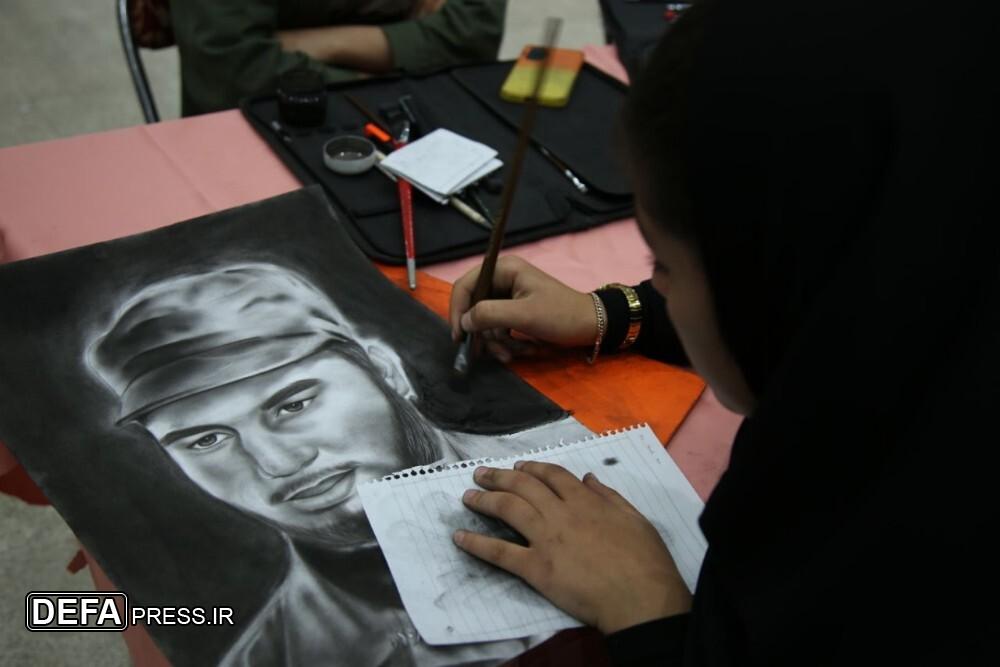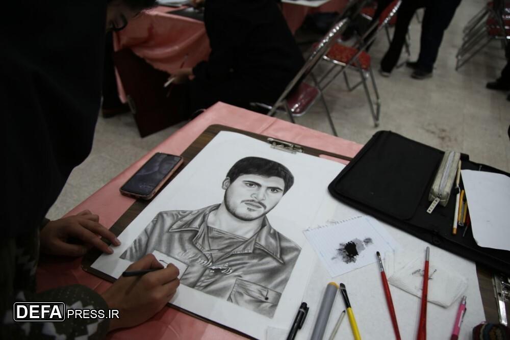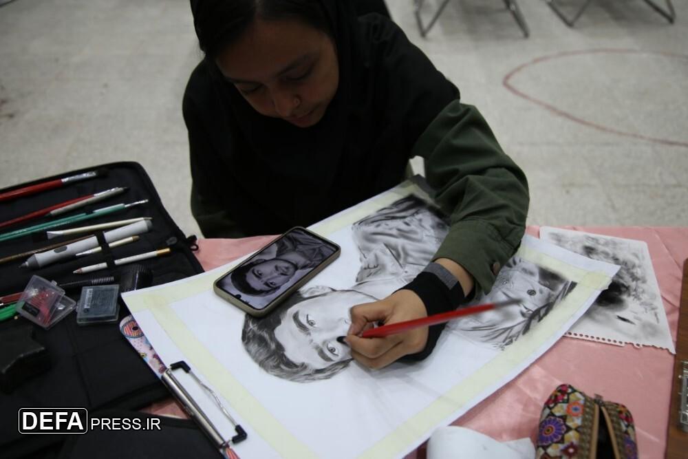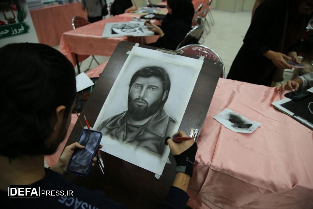تصاویر/ طراحی سیاه‌قلم چهره ۵۴ شهید شاخص خراسان‌شمالی در چهاردهمین نمایشگاه ملی دفاع مقدس