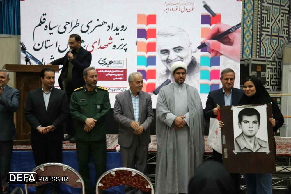 همزمان با چهاردهمین نمایشگاه ملی کتاب دفاع مقدس و دوازدهمین نمایشگاه کتاب خراسان شمالی در محفلی هنری با عنوان رویداد هنری طراحی سیاه قلم پرتره ۵۴ شهید از شهدای شاخص استان برگزار شد.