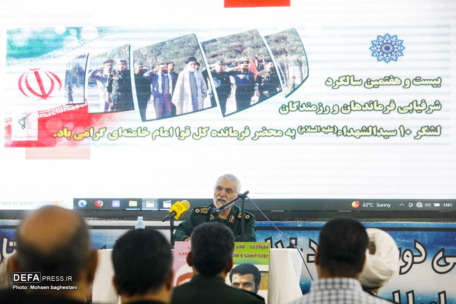 مراسم گرامیداشت بیست و هفتمین سالگرد حضور رهبر معظم انقلاب اسلامی در لشکر ۱۰ سیدالشهدا (ع) و مجمع رزمندگان این لشکر در حسینیه پادگان حر با حضور جمعی از فرماندهان و پیشکسوتان این لشکر در دوران دفاع برگزار شد.