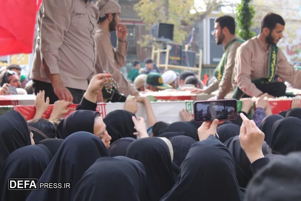 تصاویر/ وداع دانش آموزان رامسر با پیکرهای ۳ شهید گمنام