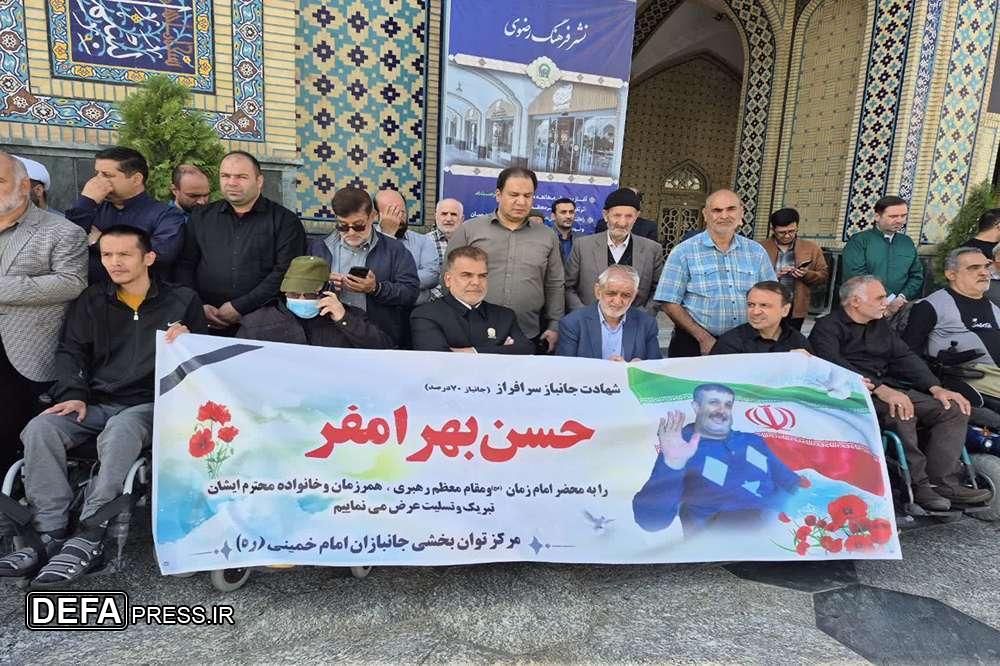 پیکر مطهر جانباز شهید؛ «حسن بهرامفر» با حضور اقشار مختلف مردم و همرزمانش، از مهدیه مشهد تا خیابان امام رضا (ع) تشییع و در صحن کوثر حرم مطهر رضوی بر پیکر این یادگار دوران دفاع مقدس اقامه نماز شد.
