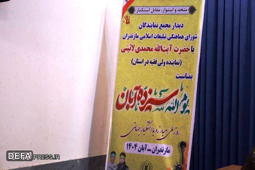 اعضای مجمع نمایندگان شورای هماهنگی تبلیغات اسلامی، به مناسبت یوم الله ۱۳ آبان امروز با آیت الله «محمد باقر محمدی لائینی» نماینده ولی فقیه در مازندران دیدار و گفتوگو کردند.