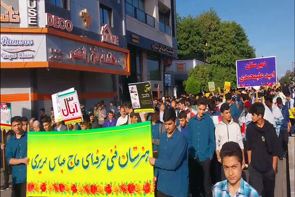 همزمان با ۱۳ آبان روز دانش آموز و روز ملی مبارزه با استکبار جهانی راهپیمایی عظیم دانش آموزی در شهرستان رامسر برگزار شد.