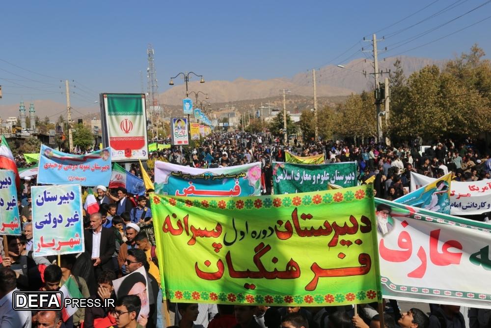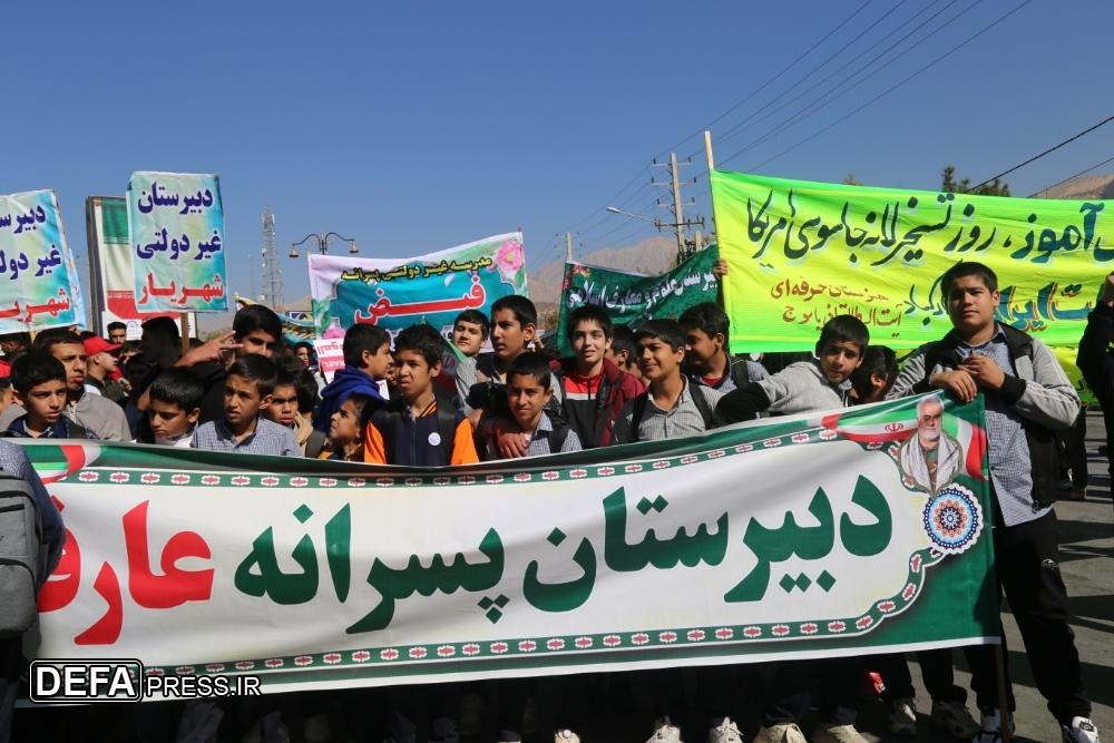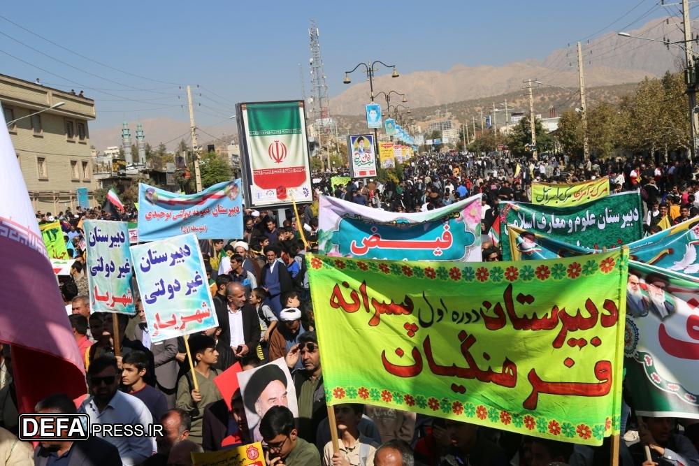 مراسم راهپیمایی ۱۳ آبان امروز (سهشنبه) با حضور پرشور دانش آموزان، اقشار مختلف مردم و مسئولان در کهگیلویه و بویراحمد برگزار شد