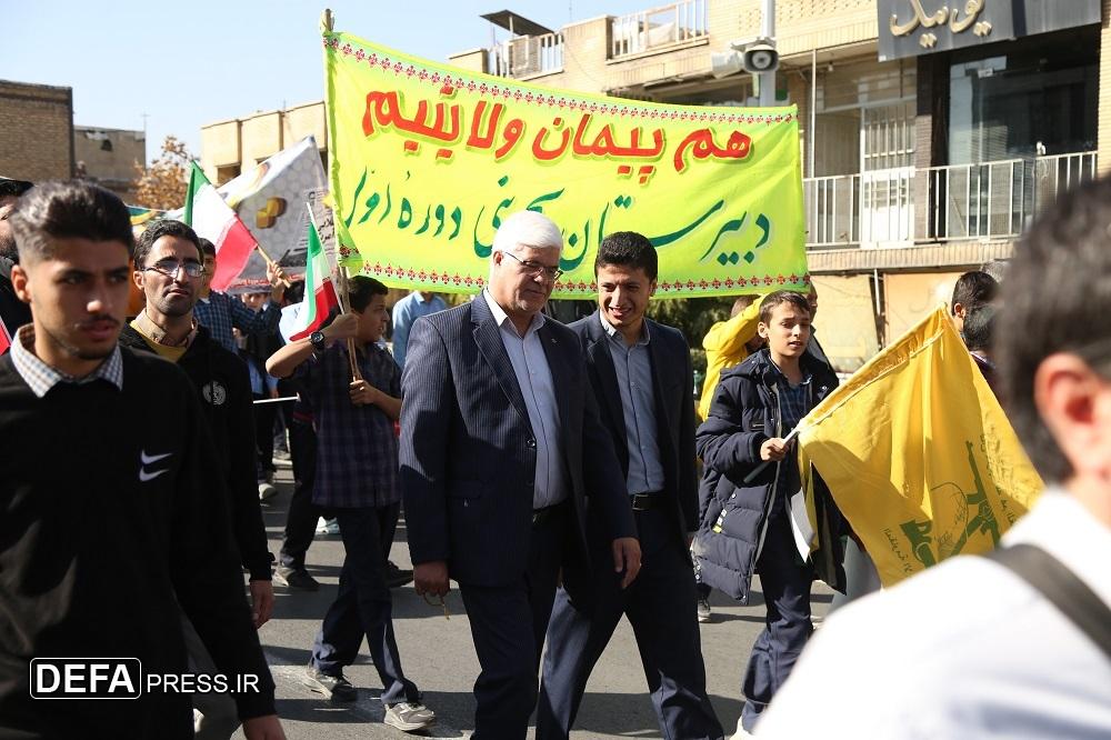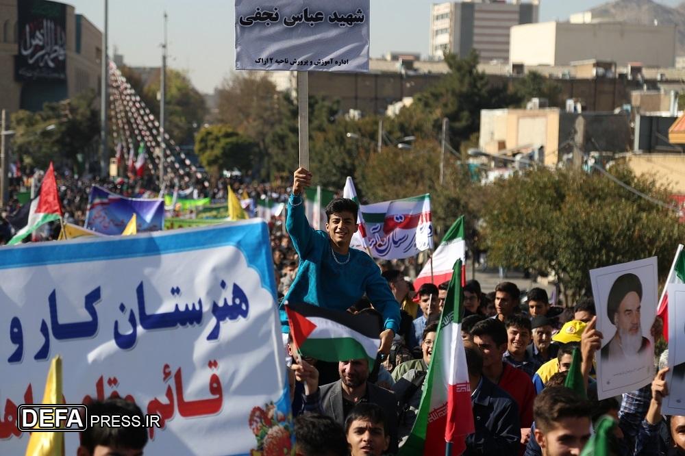 مراسم ۱۳ آبان، بعد از نواخته شدن زنگ استکبار ستیزی در مدرسه نمونه دولتی حاج کاظمی اراک، مردم، دانش آموزان مدارس مختلف و مسئولین شهرستانی و استانی به راهپیمایی علیه استکبار جهانی پرداختند، مسیر راهپیمایی از میدان شهدا تا میدان سرداران مقابل مصلی بیت المقدس شهرستان اراک ادامه داشت.
