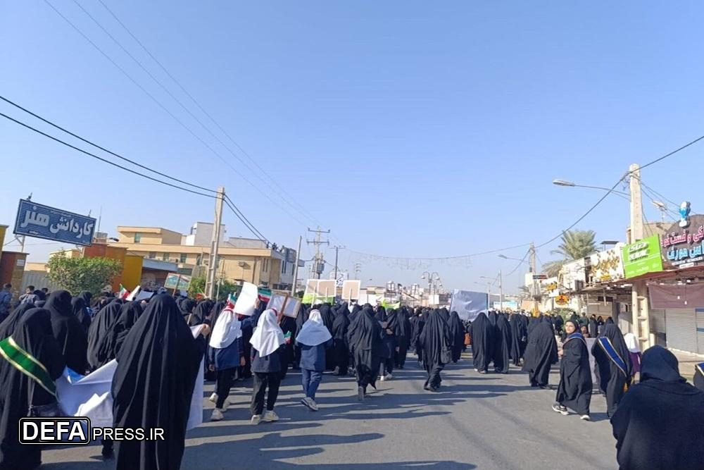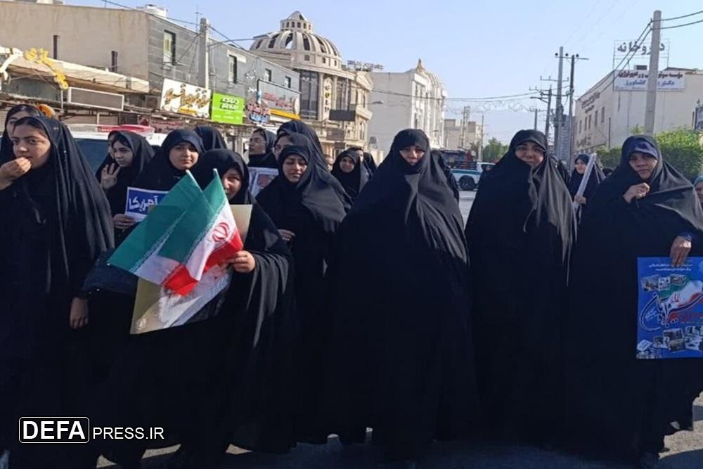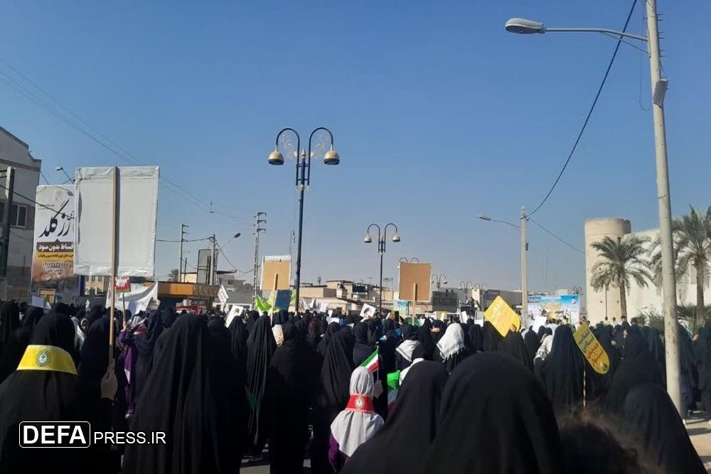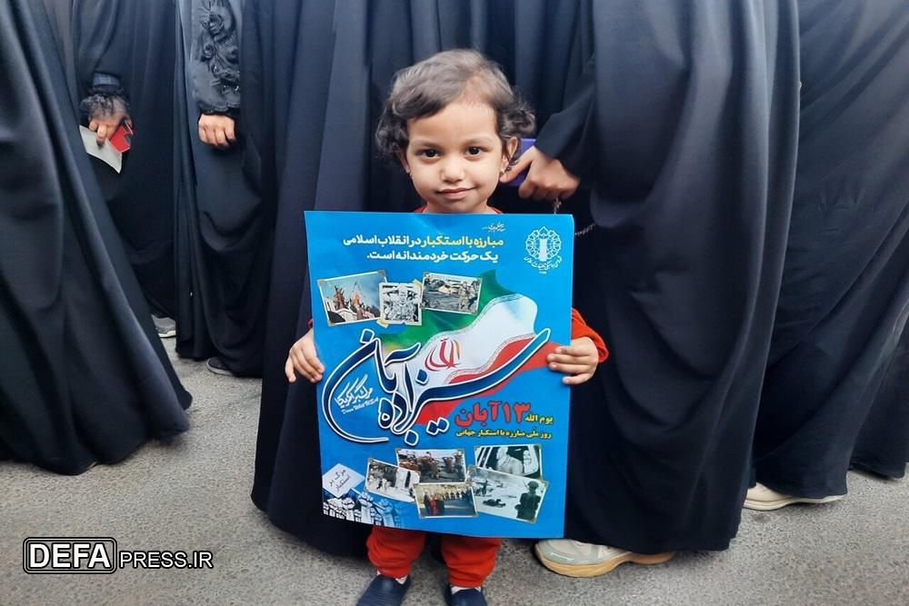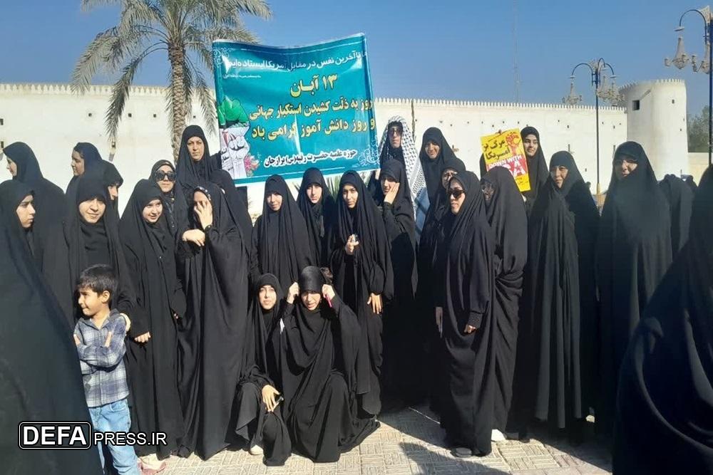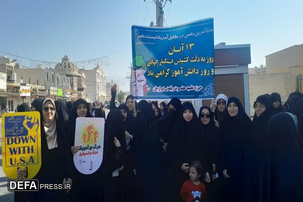 تصاویر/ حضور طلاب مدرسه علمیه حضرت رقیه(س) برازجان در راهپیمایی یومالله ۱۳ آبان