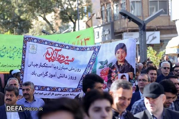 سه شنبه ۱۳ آبان ۱۴۰۴؛ سیزده آبانی متفاوت و کم‌نظیر در استان فرهنگی کردستان، سرزمین مجاهدت‌های خاموش. همراه با حماسه حضور نسل‌های متفاوت با سلائق گوناگون، اما منسجم و یکپارچه در پای آرمان‌های انقلاب اسلامی، و موجی خروشان در برابر نظام سلطه و استکبار جهانی.