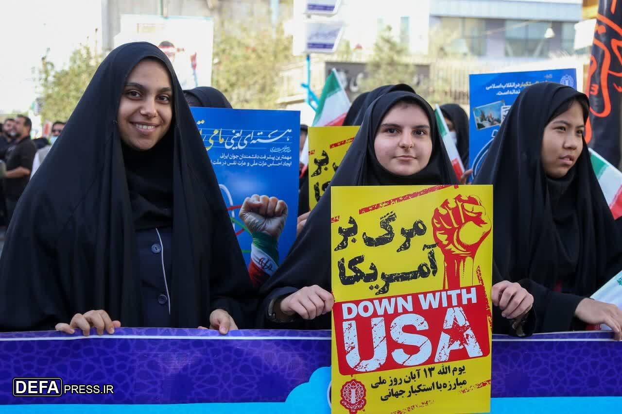 مردم قم بویژه دانش آموزان و دانشجویان با حضور پرشور در راهپیمایی حماسی یوم الله ۱۳ آبان از دفتر رهبر معظم انقلاب در قم تا حرم مطهر حضرت معصومه(س)، بار دیگر خشم و انزجار خویش را از استکبار جهانی اعلام کردند.