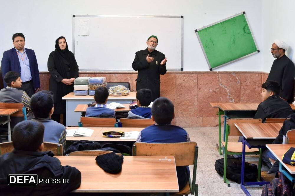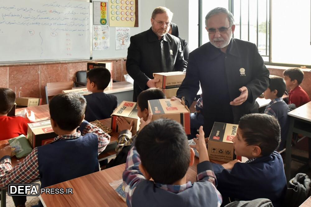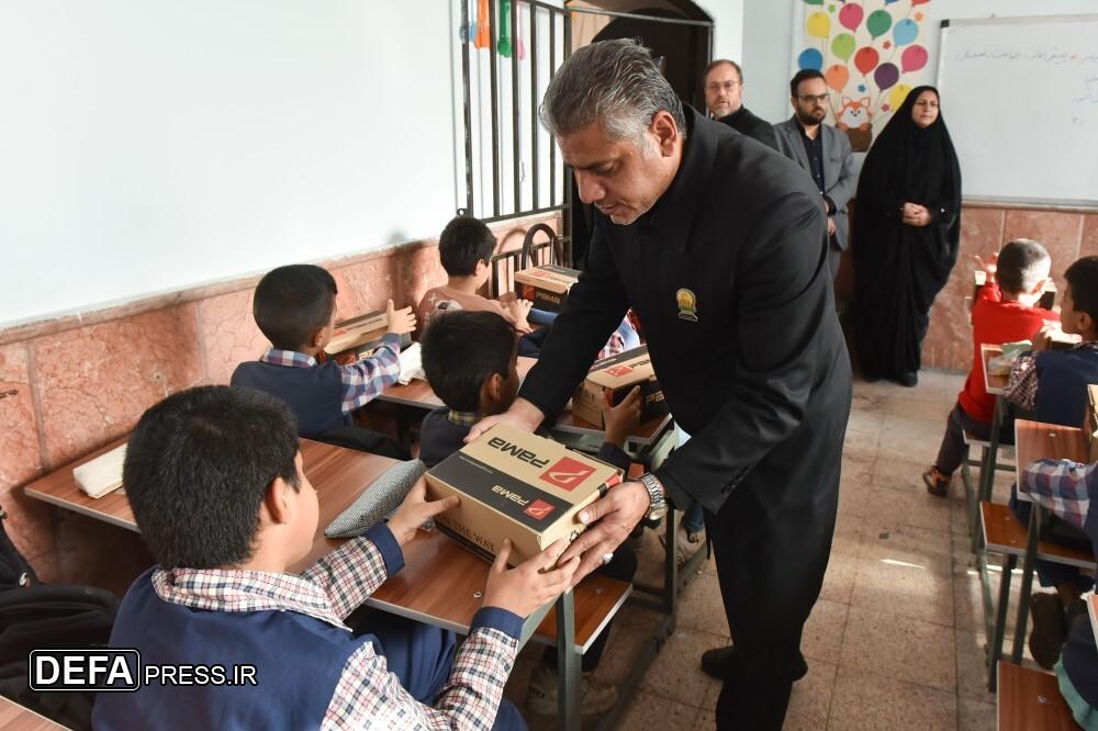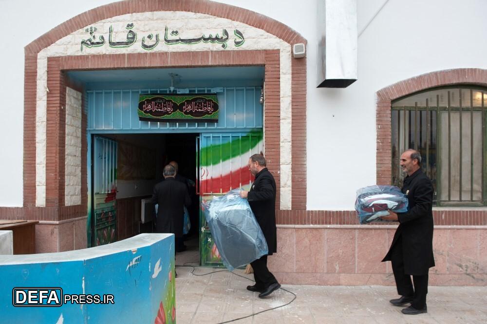 جمعی از خدام اداره فراشان حرم مطهر رضوی، با حضور در مدرسه قائم روستای کوشک مهدی، ۲۷۰ کاپشن، کفش و لوازم التحریر به دانشآموزان این مدرسه اهدا کردند.