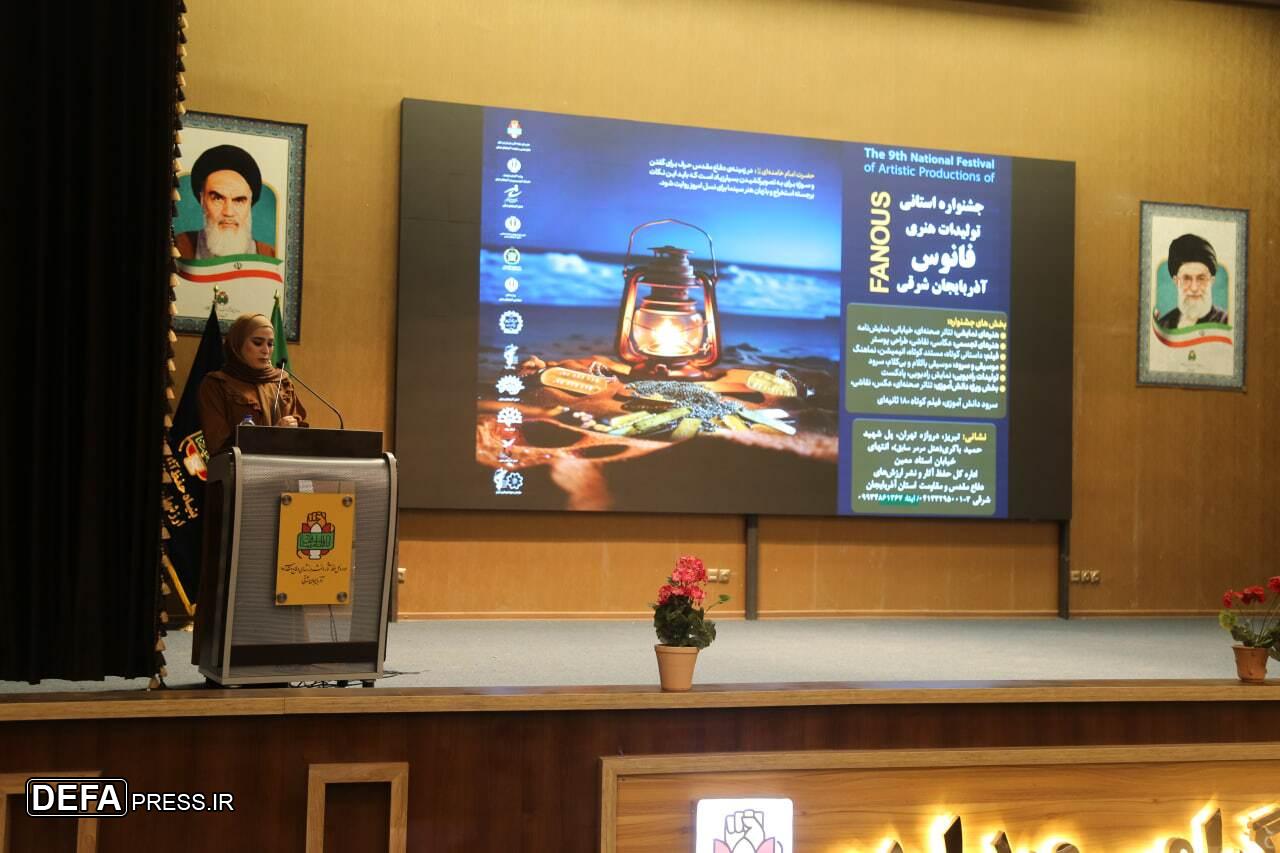 جشنواره استانی فانوس در پنج بخش هنر‌های نمایشی (تئاتر صحنه‌ای، خیابانی و نمایشنامه)، هنر‌های تجسمی (عکاسی، نقاشی و طراحی پوستر)، سرود و موسیقی (با کلام و بی‌کلام)، فیلم (داستانی، مستند کوتاه، انیمیشن و نماهنگ)، رادیویی (نمایش و پادکست) و بخش ویژه دانش‌آموزی (تئاتر صحنه‌ای، سرود دانش‌آموزی، نقاشی و فیلم کوتاه ۱۸۰ ثانیه‌ای) روز پنجشنبه ۱۵ آبان ماه ۱۴۰۴ در سالن همایش‌های مرکز فرهنگی دفاع مقدس و مقاومت استان آذربایجان شرقی برگزار شد.