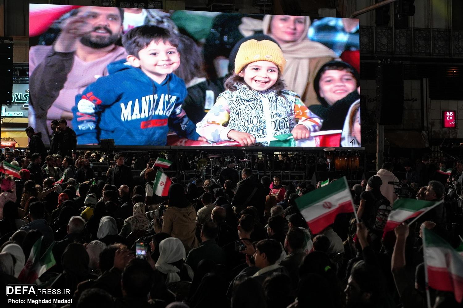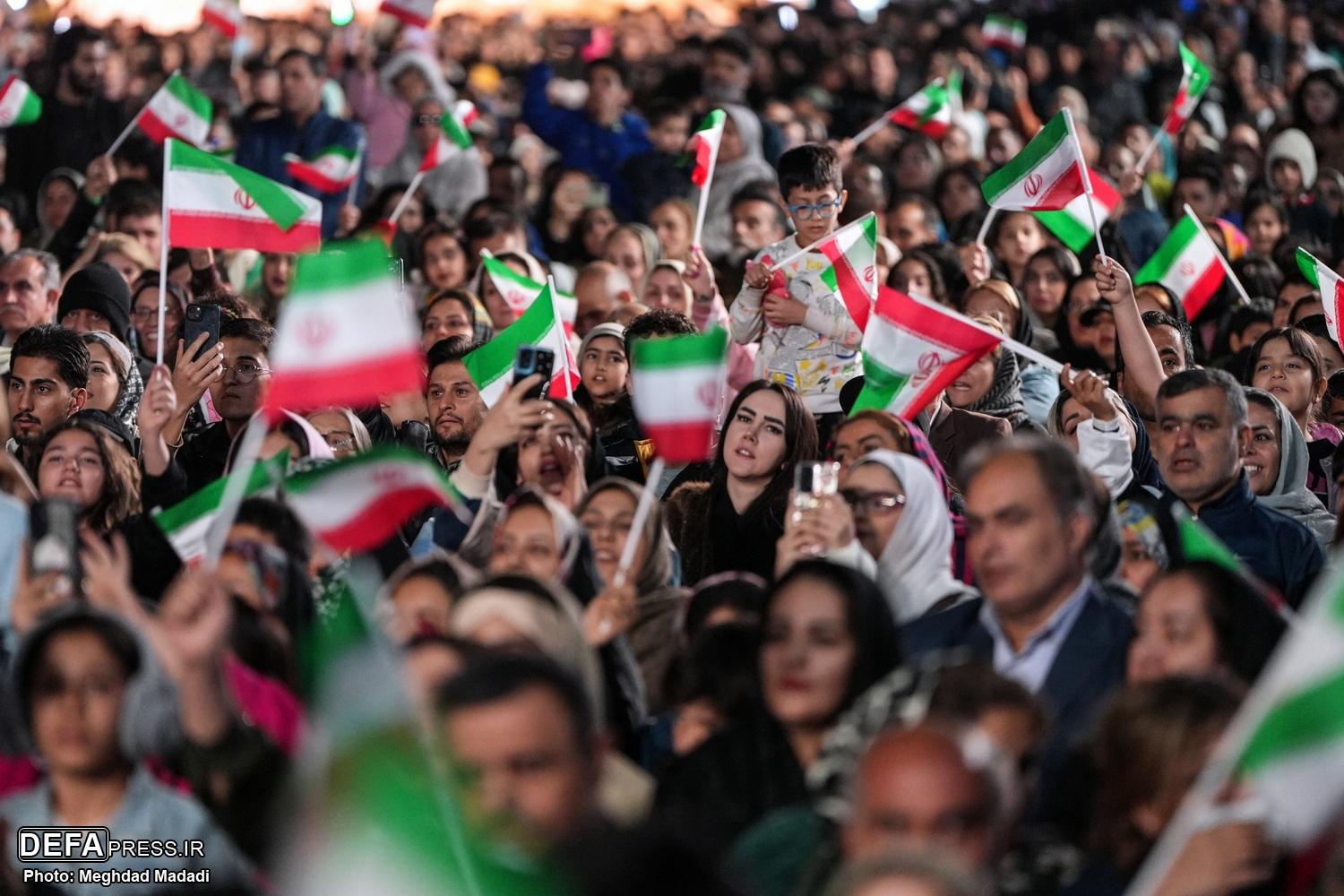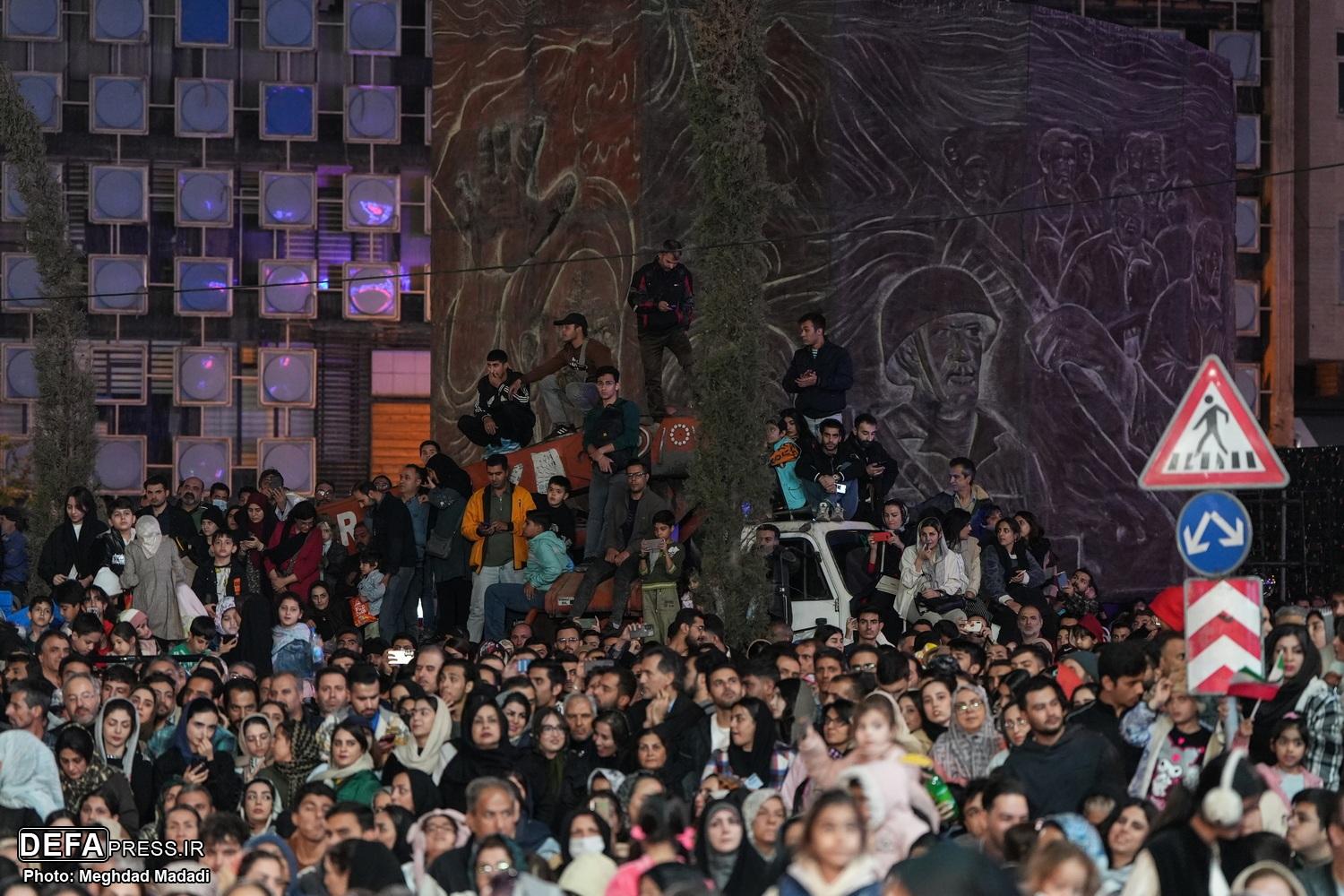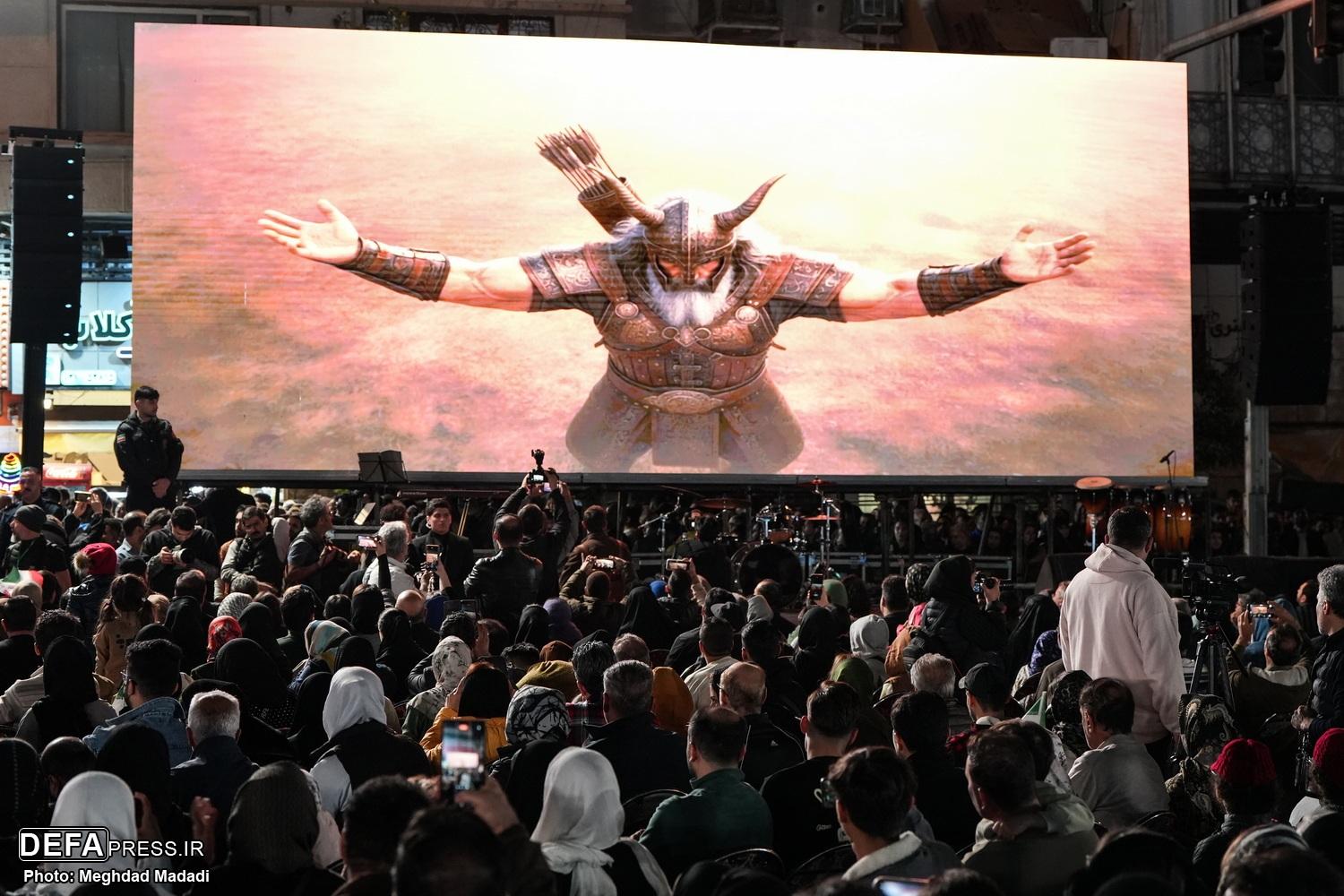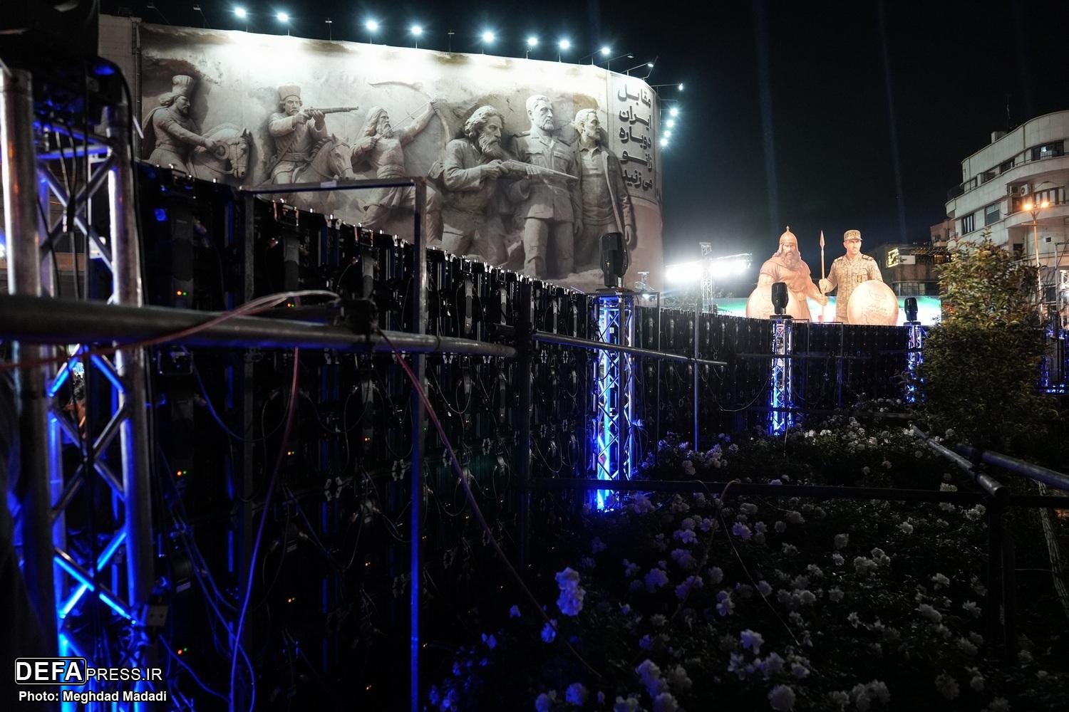 رویداد شب ایران در میدان انقلاب تهران با رونمایی از مجسمه «زانو زدن والرین مقابل پادشاه ایران» و باحضور گسترده اقشار مردم و خواندن سرود «ایایران» برگزارشد.