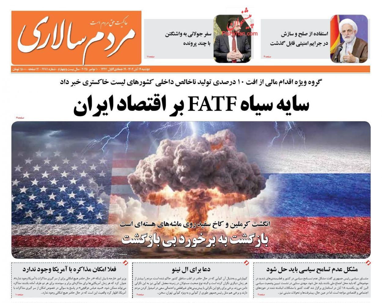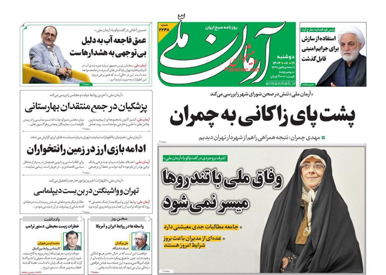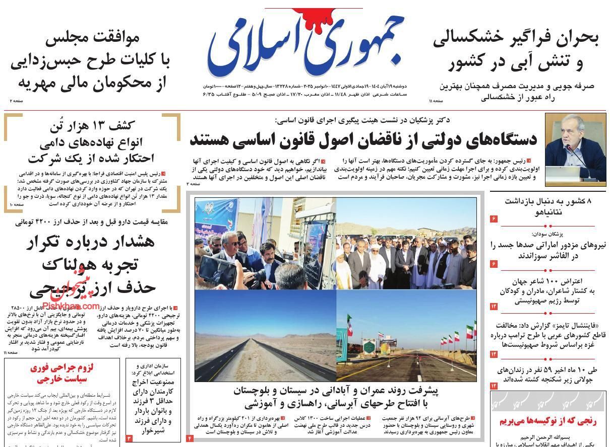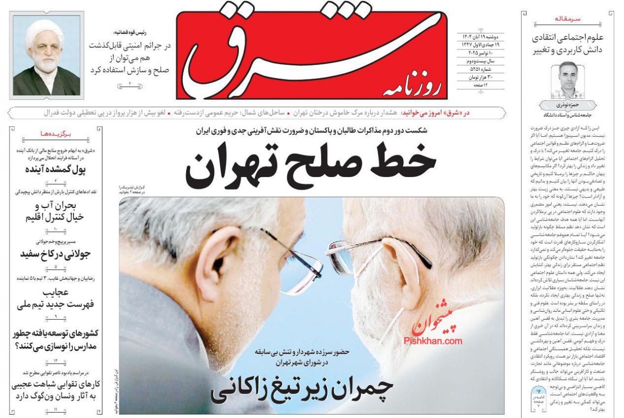 روزنامههای نوزدهم آبان ۱۴۰۴