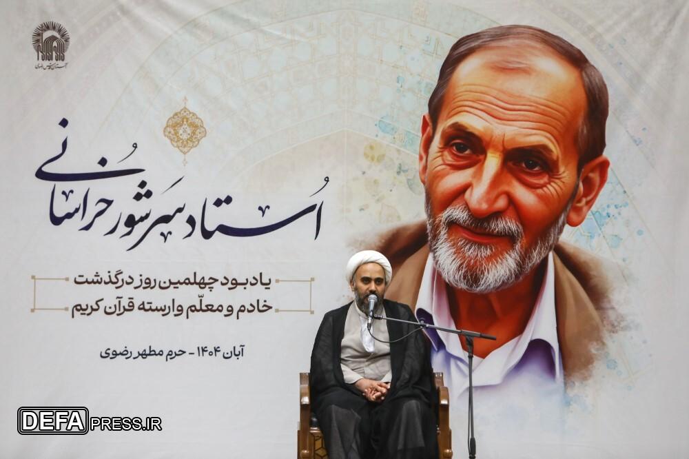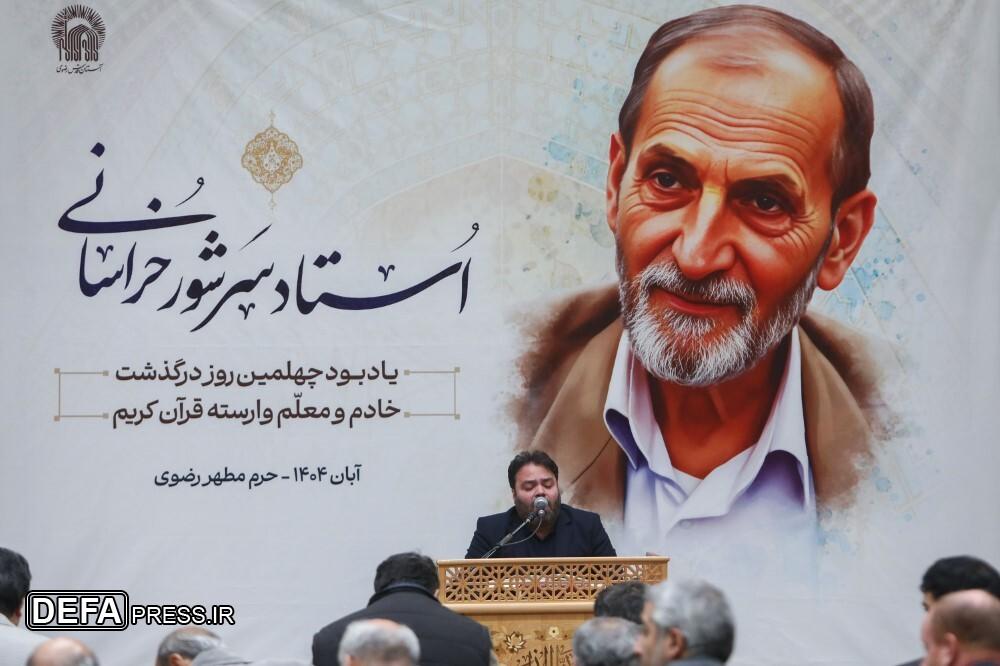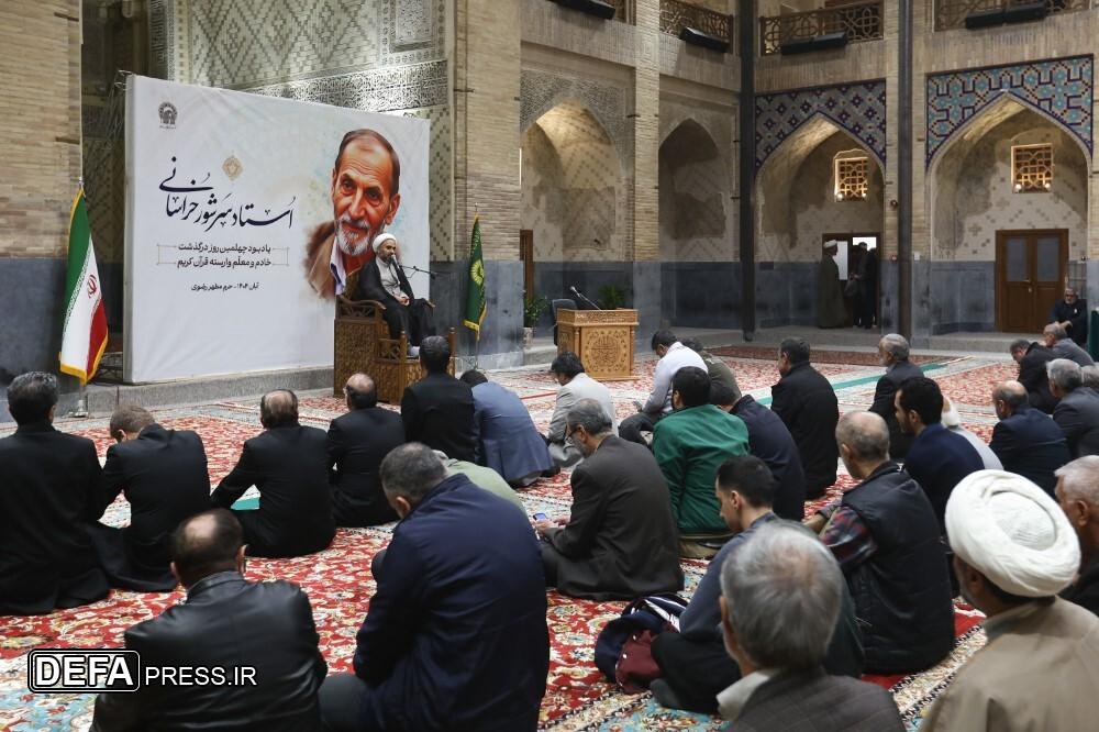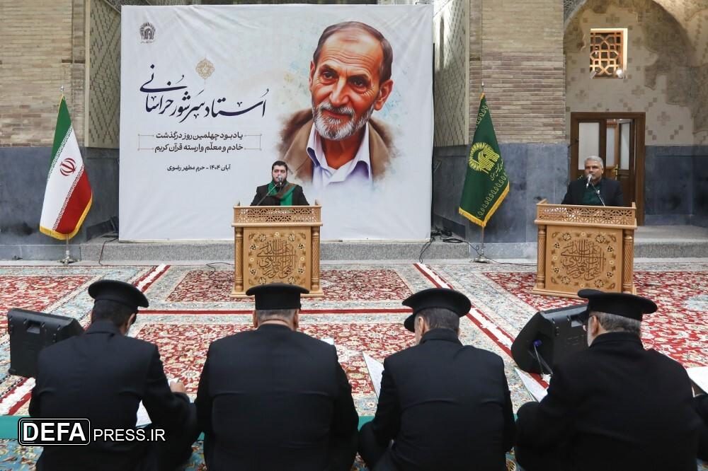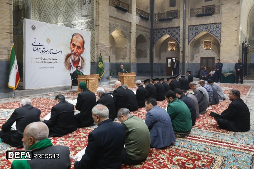 مراسم بزرگداشت چهلمین روز درگذشت ﻣﺮﺣﻮﻡ استاد ﻏﻼﻣﻌﺒﺎﺱ ﺳﺮﺷﻮﺭ ﺧﺮﺍﺳﺎﻧﯽ؛ ﻣﻌﻠﻢ ﻭ ﻣؤﻟﻒ ﮐﺘﺐ ﺁﻣﻮﺯﺵ ﻗﺮﺁﻥ ﮐﺮﯾﻢ، با حضور اقشار مردم در دارالقرآن حرم مطهر رضوی برگزار شد.