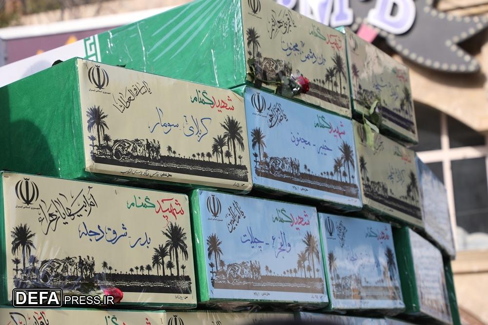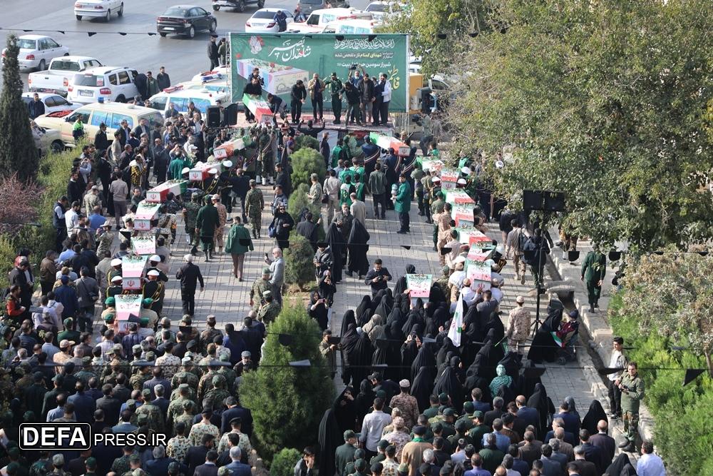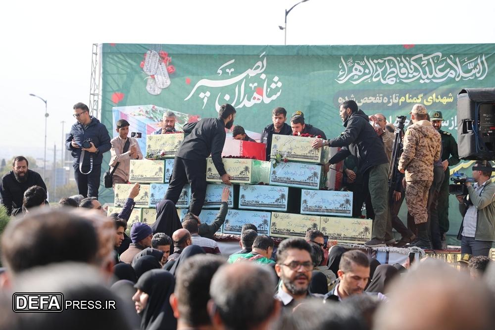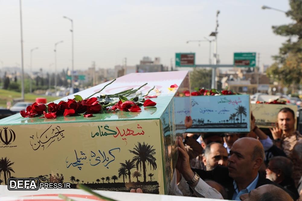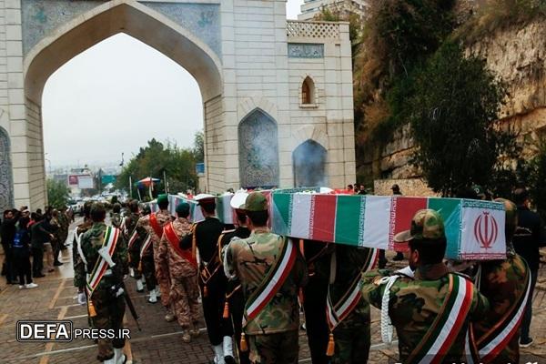 مراسم استقبال از کاروان «شاهدان بصیر» شهدای گمنام و یک شهید تازه شناسایی شده دوران دفاع مقدس با حضور یگانهای نظامی، مسئولین دستگاهای اجرایی و عموم مردم شهید پرور شیراز صبح امروز دوشنبه ۲۶ آبان در محل دروازه قرآن شیراز برگزار شد.