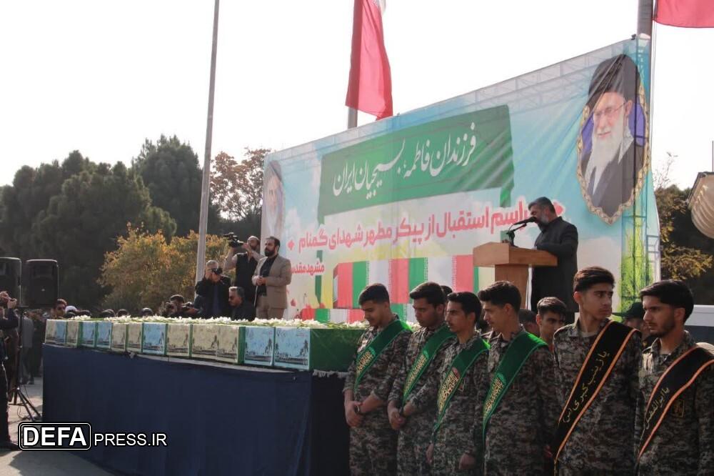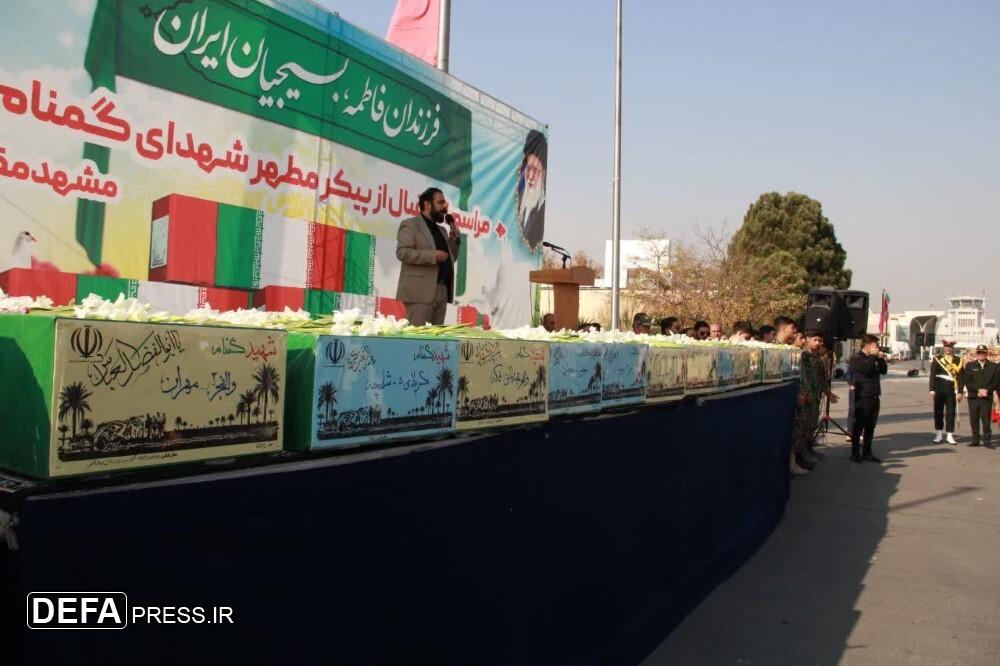 پیکر مطهر شهدای گمنام دوران دفاع مقدس با شعار محوری «فرزندان فاطمه، بسیجیان ایران» وارد فرودگاه بین‌المللی شهید هاشمی‌نژاد مشهد شد.