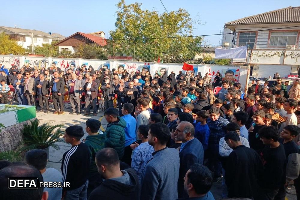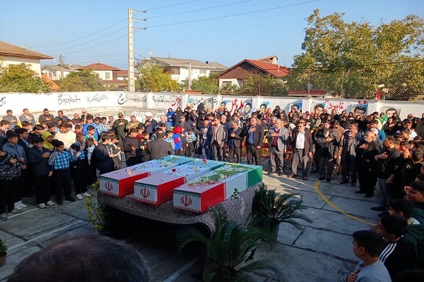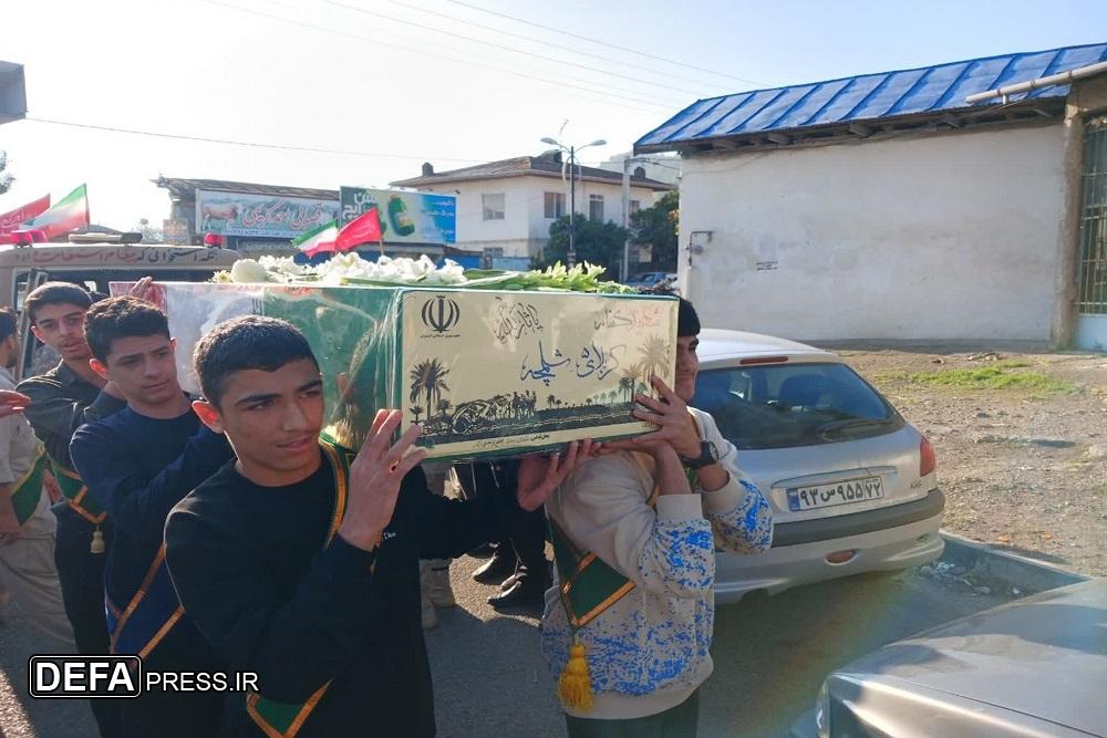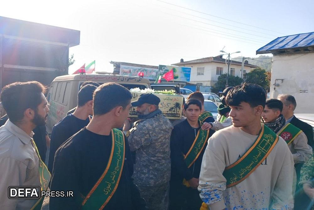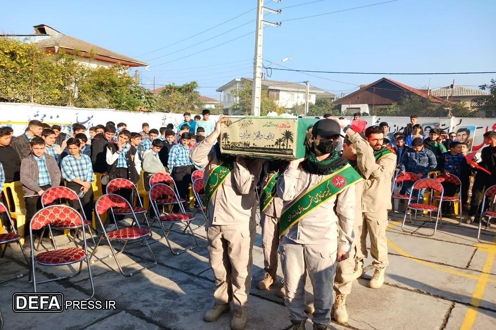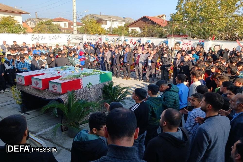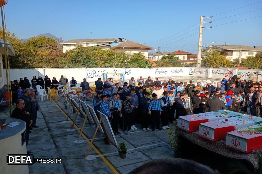 تصاویر/ وداع دانش آموزان رامسر با پیکرهای ۳ شهید گمنام