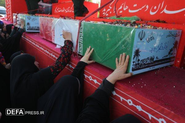 تصاویر/ وداع دانش آموزان رامسر با پیکرهای ۳ شهید گمنام