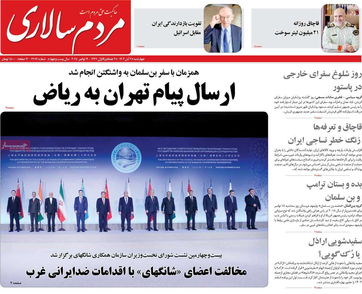روزنامههای بیست و هشتم آبان ۱۴۰۴