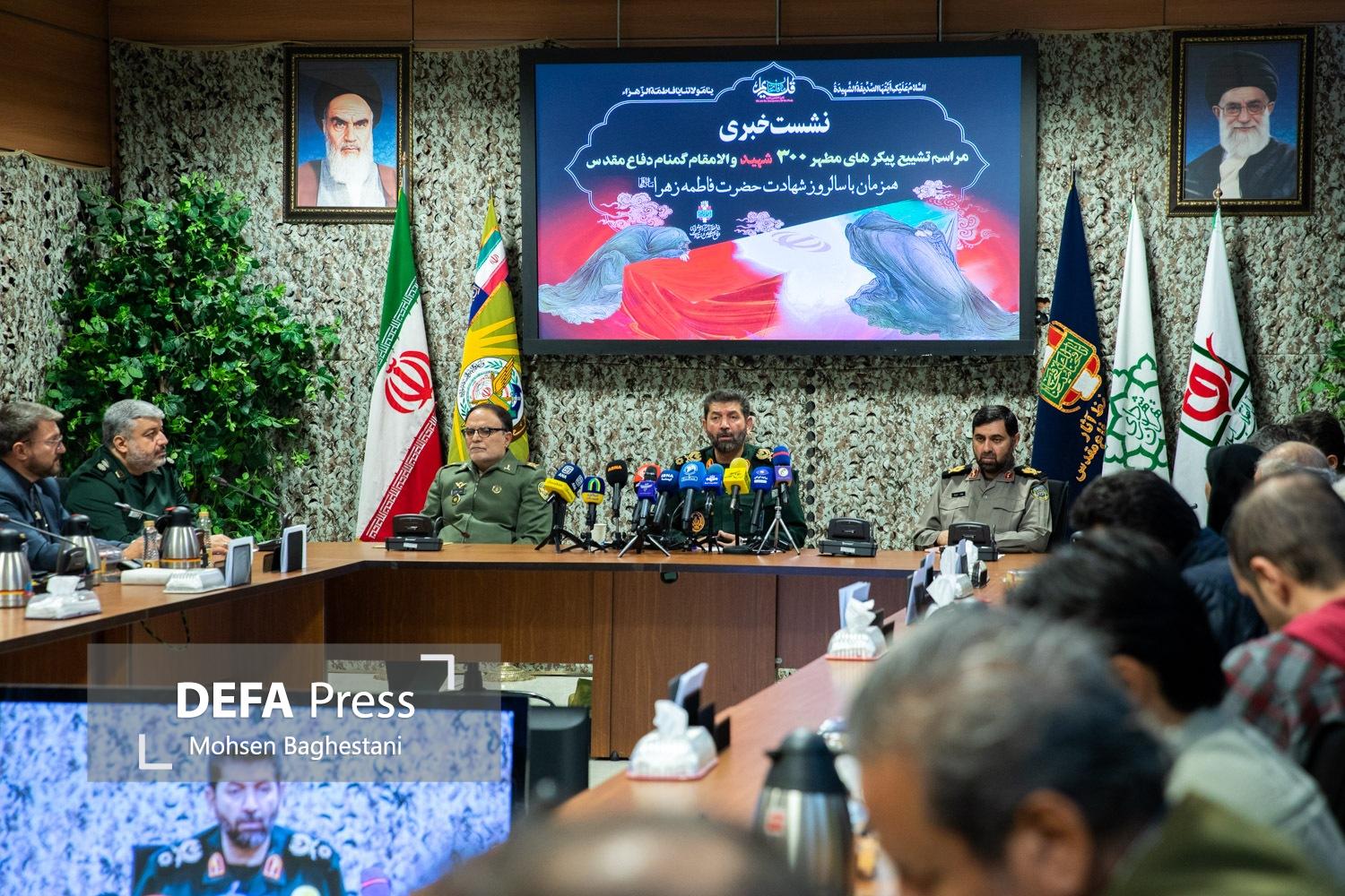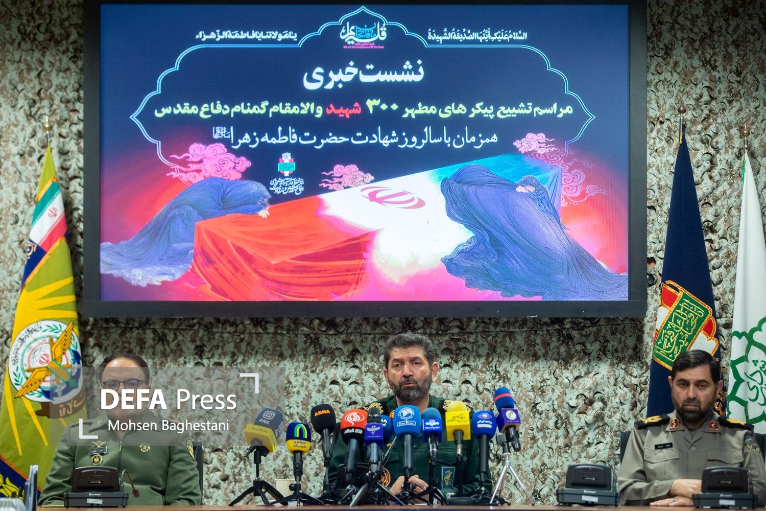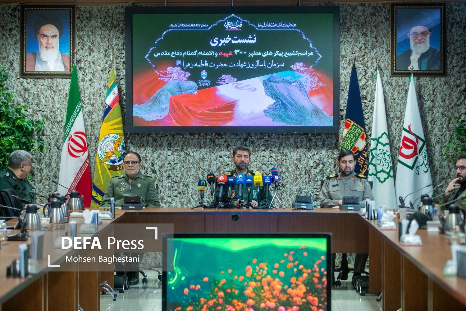 نشست خبری مراسم تشییع پیکر مطهر ۳۰۰ شهید گمنام دفاع مقدس همزمان با سالروز شهادت حضرت زهرا (س) در سراسر کشور، صبح امروز برگزار شد.