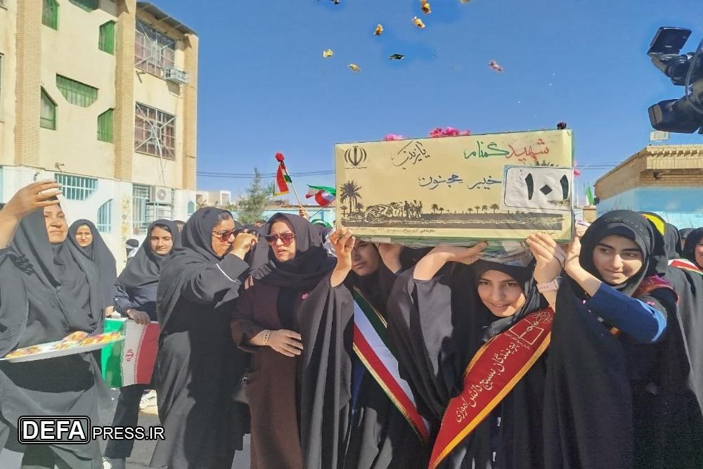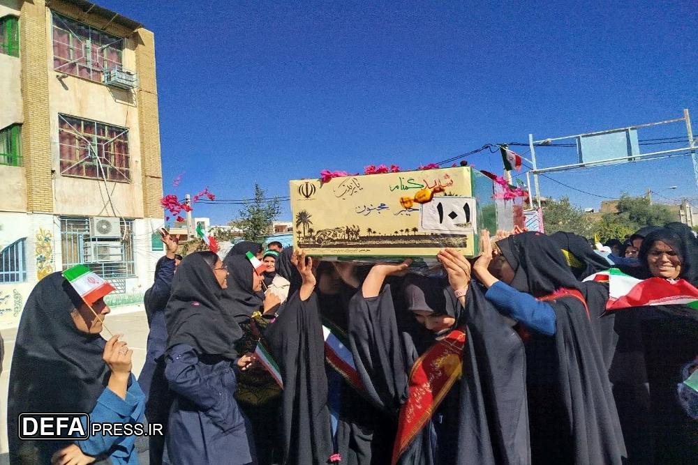 دانش آموزان شهر دهدشت با حضوری باشکوه از پیکر مطهر شهدای گمنام استقبال کردند