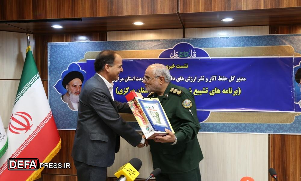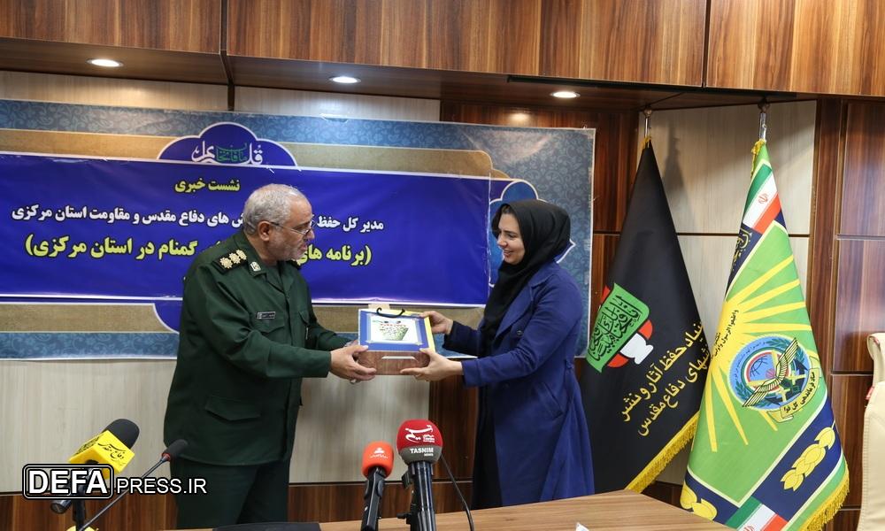 در حاشیه نشست خبری مدیرکل حفظ آثار و نشر ارزش‌های دفاع مقدس و مقاومت استان مرکزی، در خصوص اعلام برنامه‌های تشییع شهدای گمنام استان، از خبرنگاران فعال در حوزه‌ی دفاع مقدس و مقاومت تجلیل و تکریم به عمل آمد.