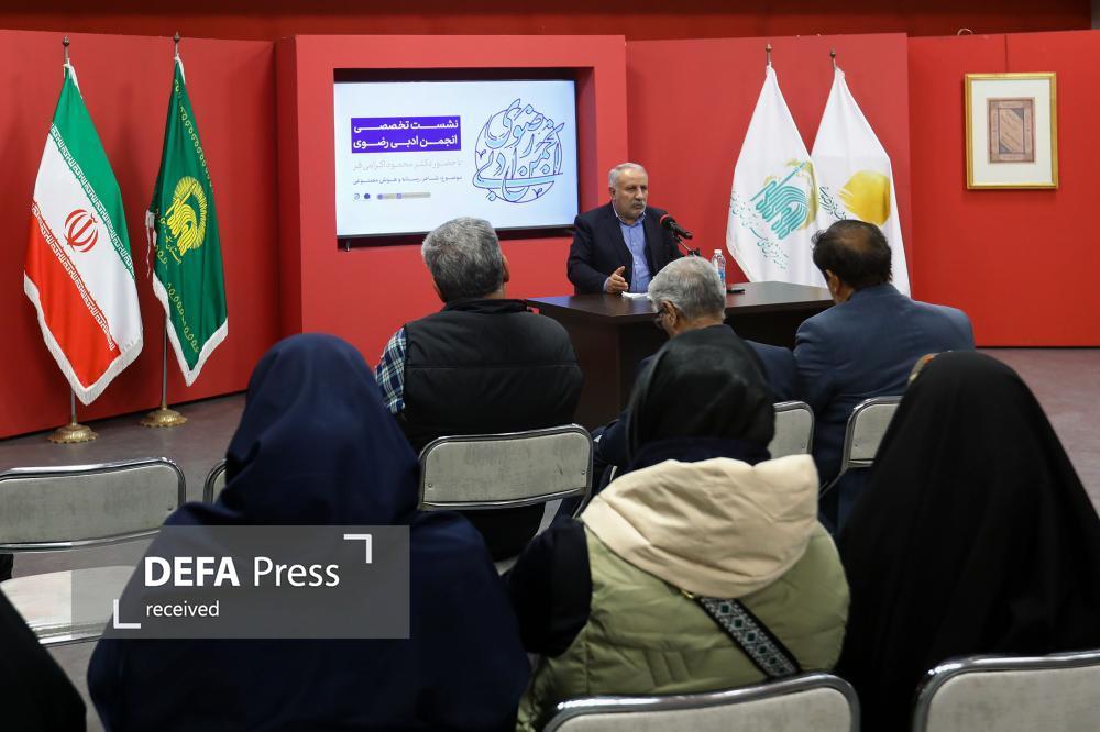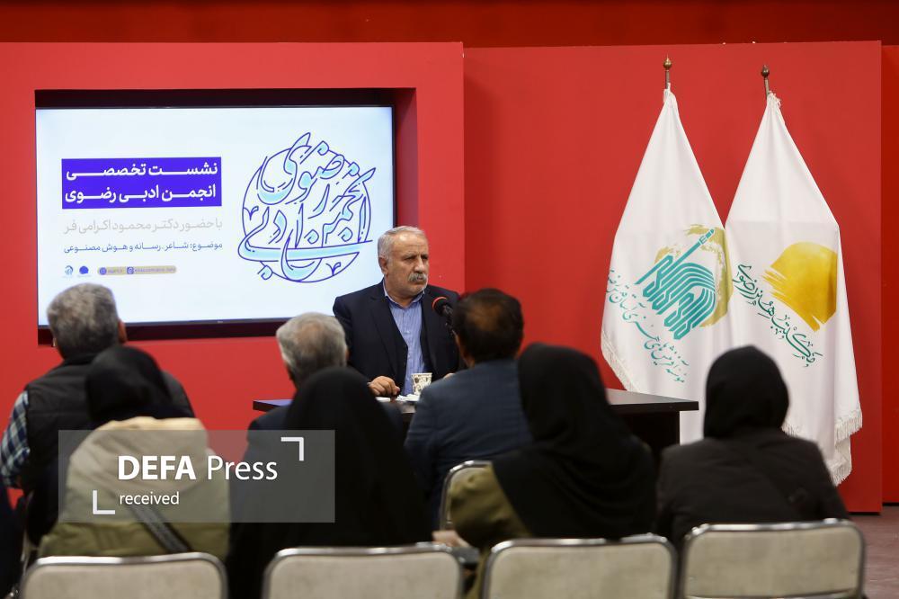 نشست تخصصی انجمن ادبی رضوی با موضوع «ﺷﺎﻋﺮ، ﺭﺳﺎﻧﻪ ﻭ ﻫﻮﺵ ﻣﺼﻨﻮﻋﯽ»، با حضور محمود اکرامیفر پژوهشگر فرهنگ و رسانه در نگارخانه رضوان مشهد برگزار شد.