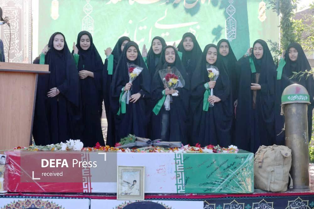 مردم ولایتمدار و شهیدرور روستای ملاخیل (پوروا) از توابع هزارجریب شهرستان نکا در همایش «مادران آسمانی، یادگار فاطمی» با پیکر مطهر شهید گمنام ۳۵ ساله از عملیات تک دشمن منطقه شلمچه وداع کردند.
