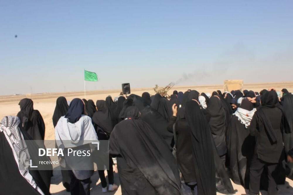 در این بازدید دانش آموزان به احترام شهدای والامقام طلائیه پای برهنه در این مسیر بهشتی قدم نهادند.