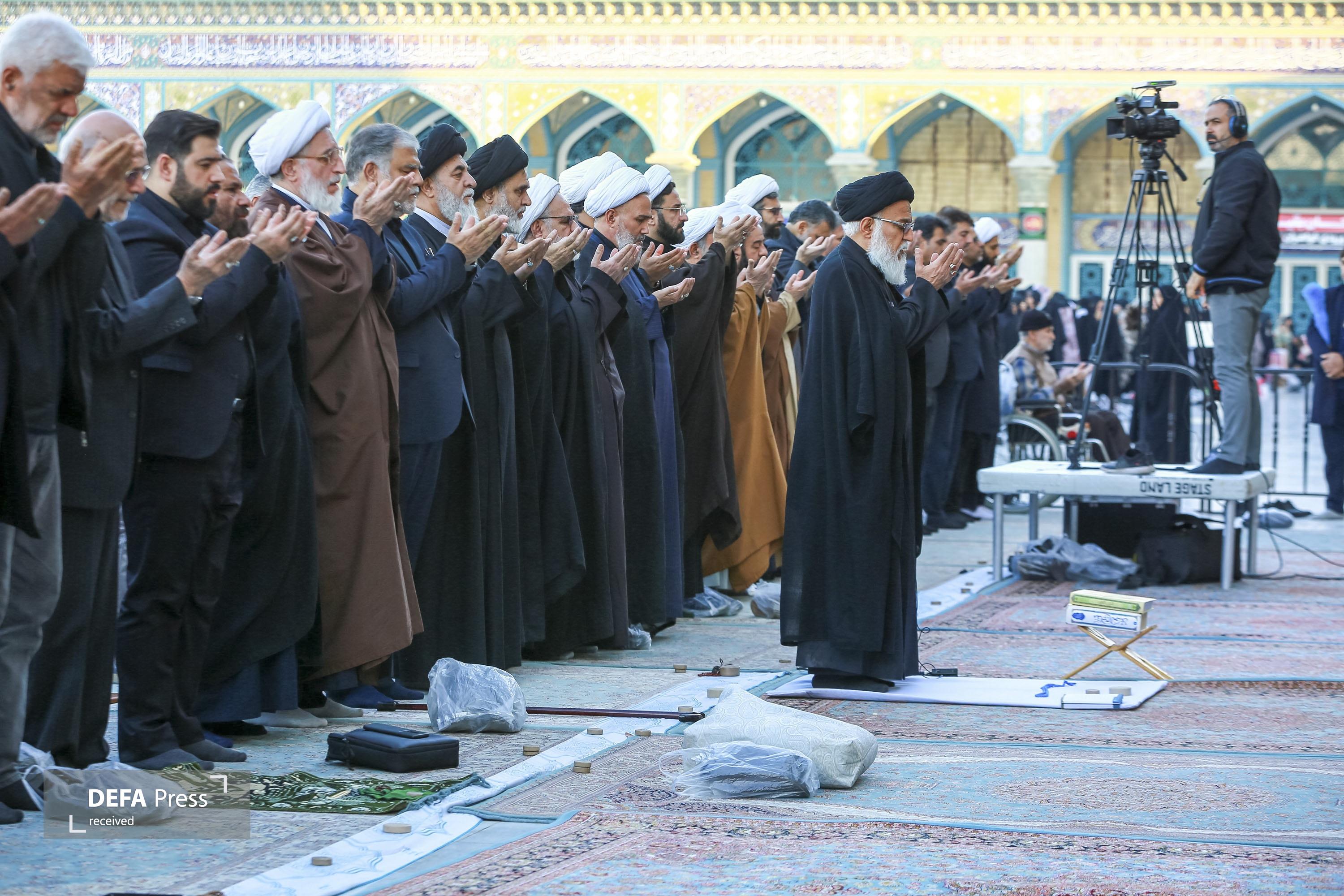 نماز طلب باران عصر امروز جمعه با حضور پیکر مطهر شهید گمنام و به امامت آیت الله سید مهدی میرباقری در صحن جامع مسجد مقدس جمکران برگزار شد.