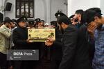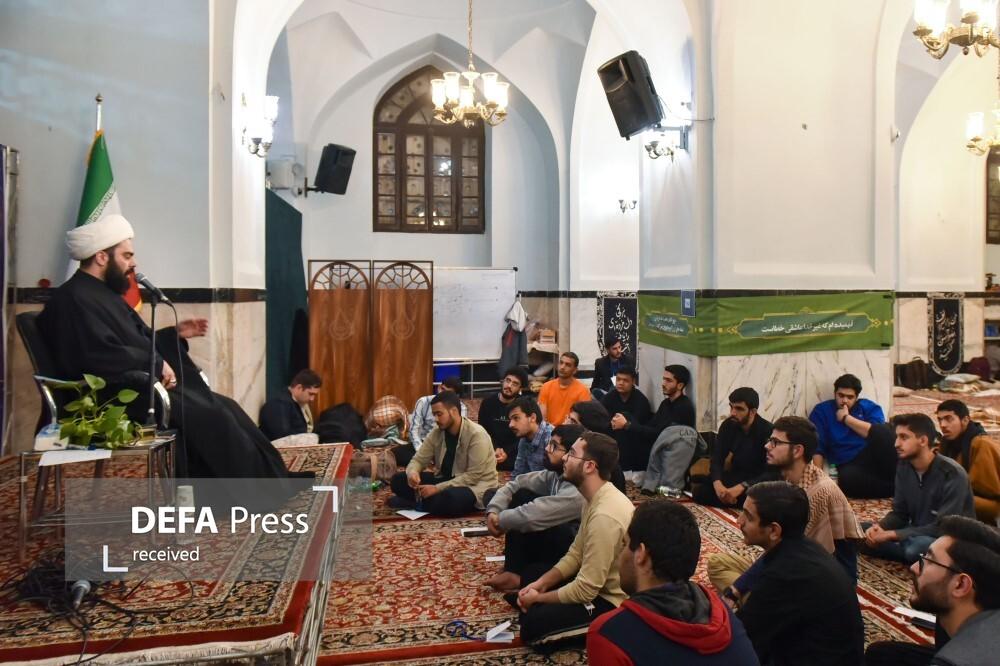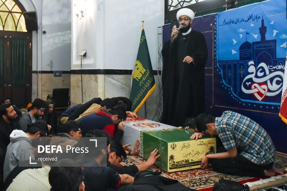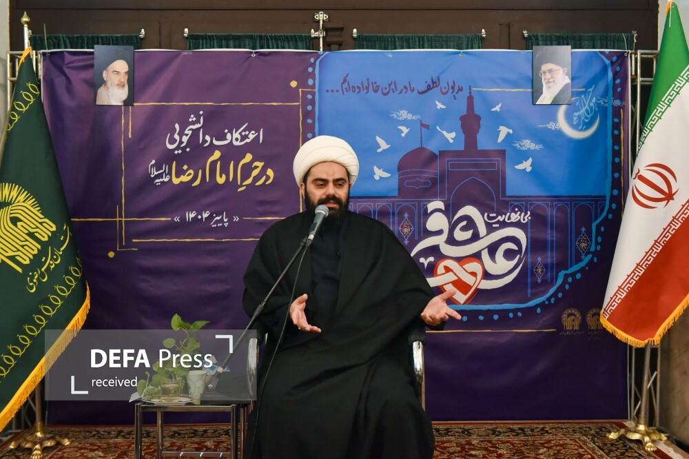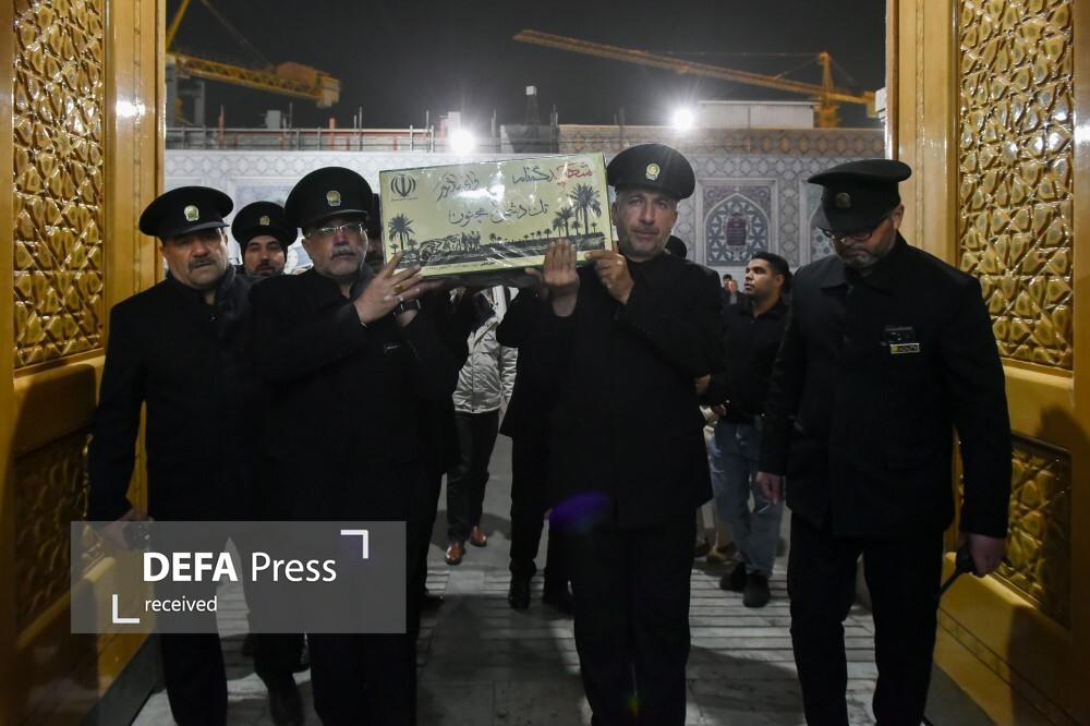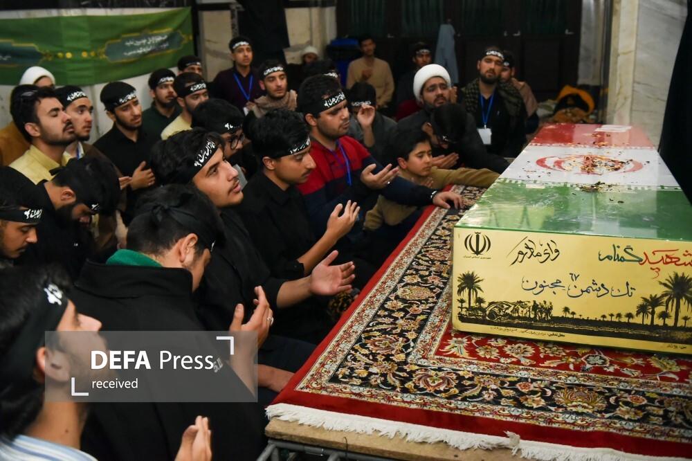 معتکفین شرکتکننده در مراسم اعتکاف دانشجویی از سراسر کشور با پیکر مطهر شهید گمنام تک دشمن در جزیره مجنون در شبستان میلانی مسجد گوهرشاد حرم مطهر امام رضا علیهالسلام وداع کردند.