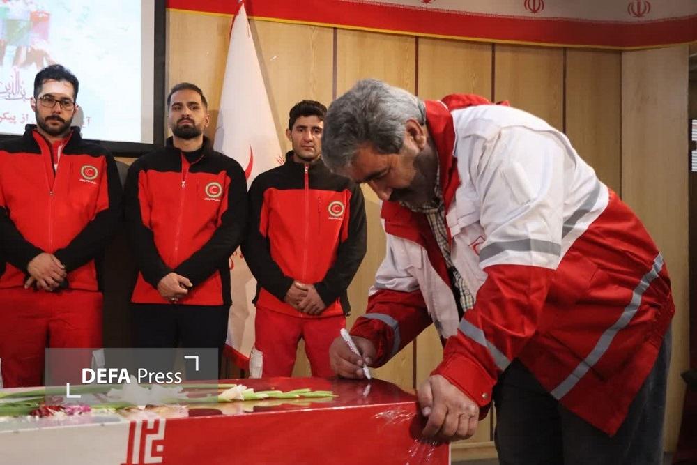 پیکر مطهر یک شهید گمنام دوران دفاع مقدس، امروز با حضور کارکنان و مردم، در ساختمان ستادی جمعیت هلال‌احمر استان همدان مورد استقبال قرار گرفت و یاد و خاطره رشادت‌های شهدای دفاع مقدس گرامی داشته شد.