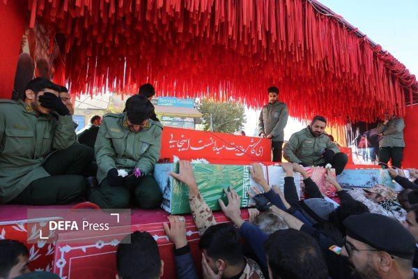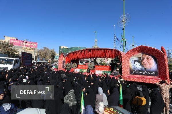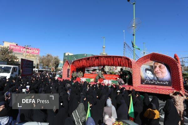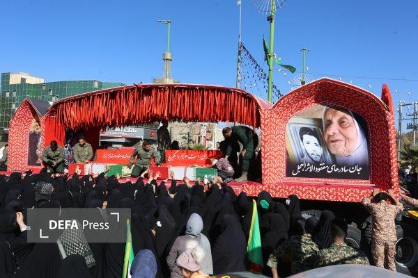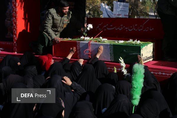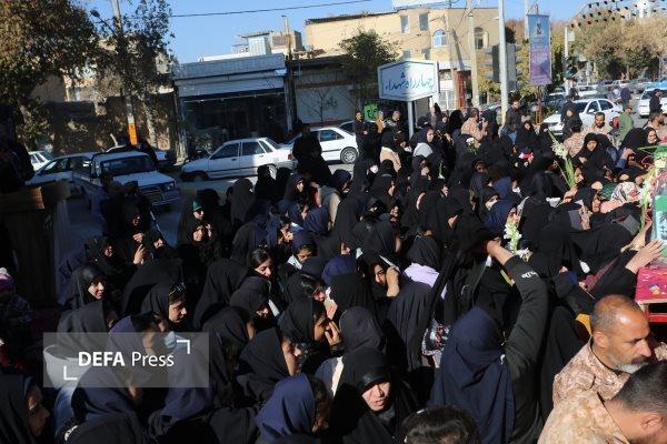 تشییع پیکر شهدای گمنام با حضور دانش آموزان دختر در اهواز