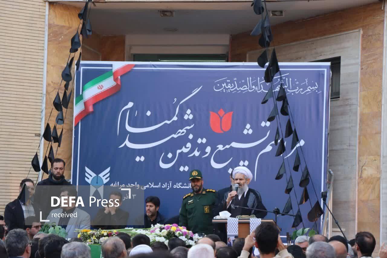 مصادف با سالروز بانوی دو عالم، امابیها حضرت فاطمه زهرا سلام الله علیها، پیکر مطهر شهید گمنام با حضور باشکوه جمعی از مسئولان، اقشار مختلف مردم، خانوادههای شهدا، ایثارگران و جانبازان، دانشگاهیان دانشگاه مراغه و بدرقه پدران و مادران شهید در دانشگاه آزاد مراغه آرام گرفت.