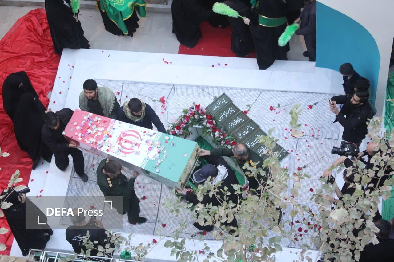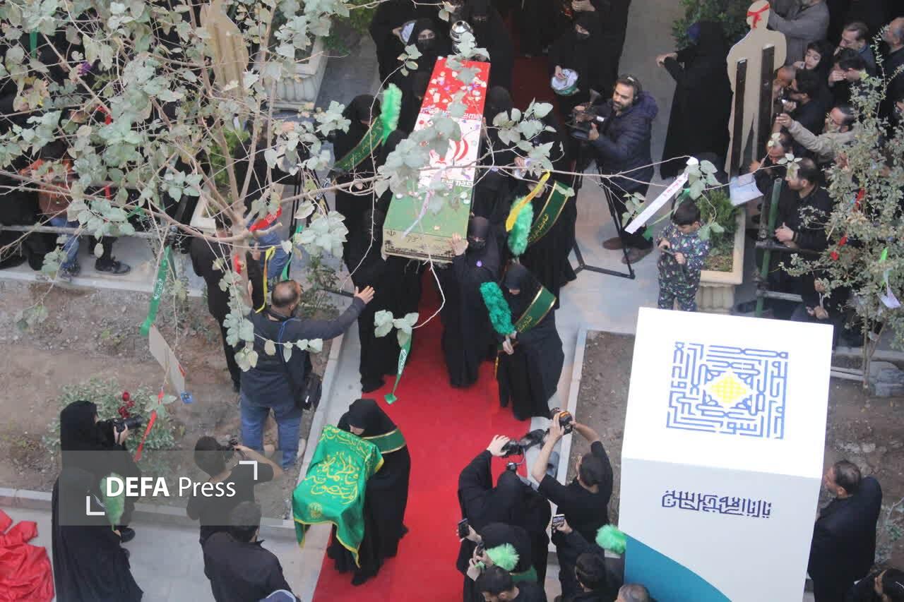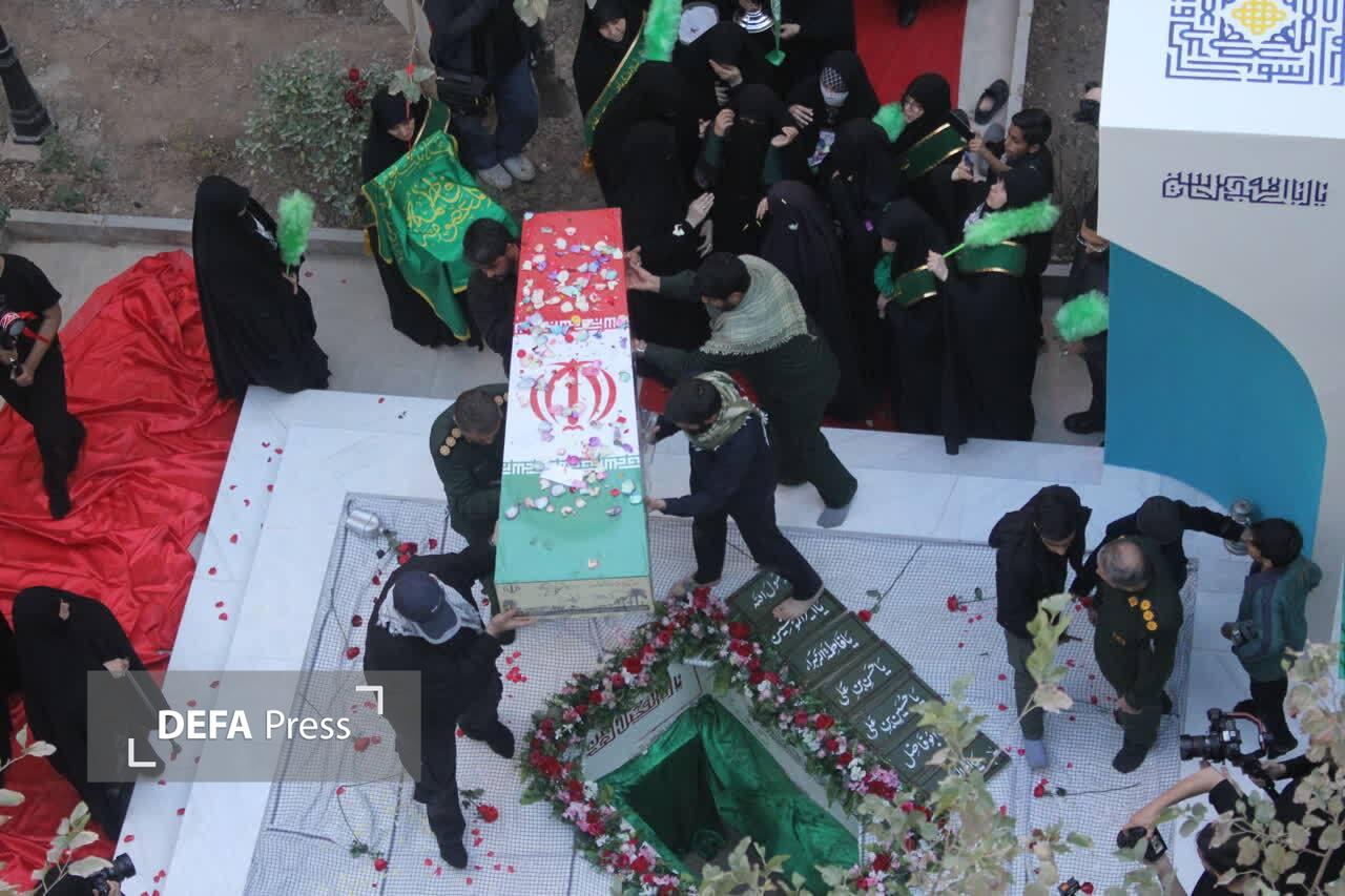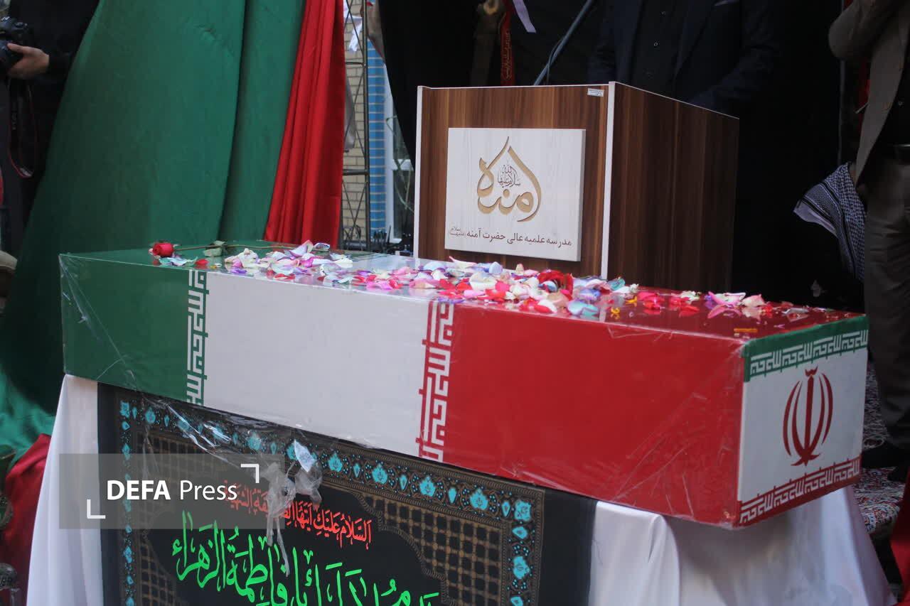 خواهران حوزه علمیه تخصصی حضرت آمنه(س) قم پیکر مطهر شهید گمنام را همچون نگینی در بر گرفتند و در مراسم تشییع و خاکسپاری این شهید عزیز سنگ تمام گذاشتند.